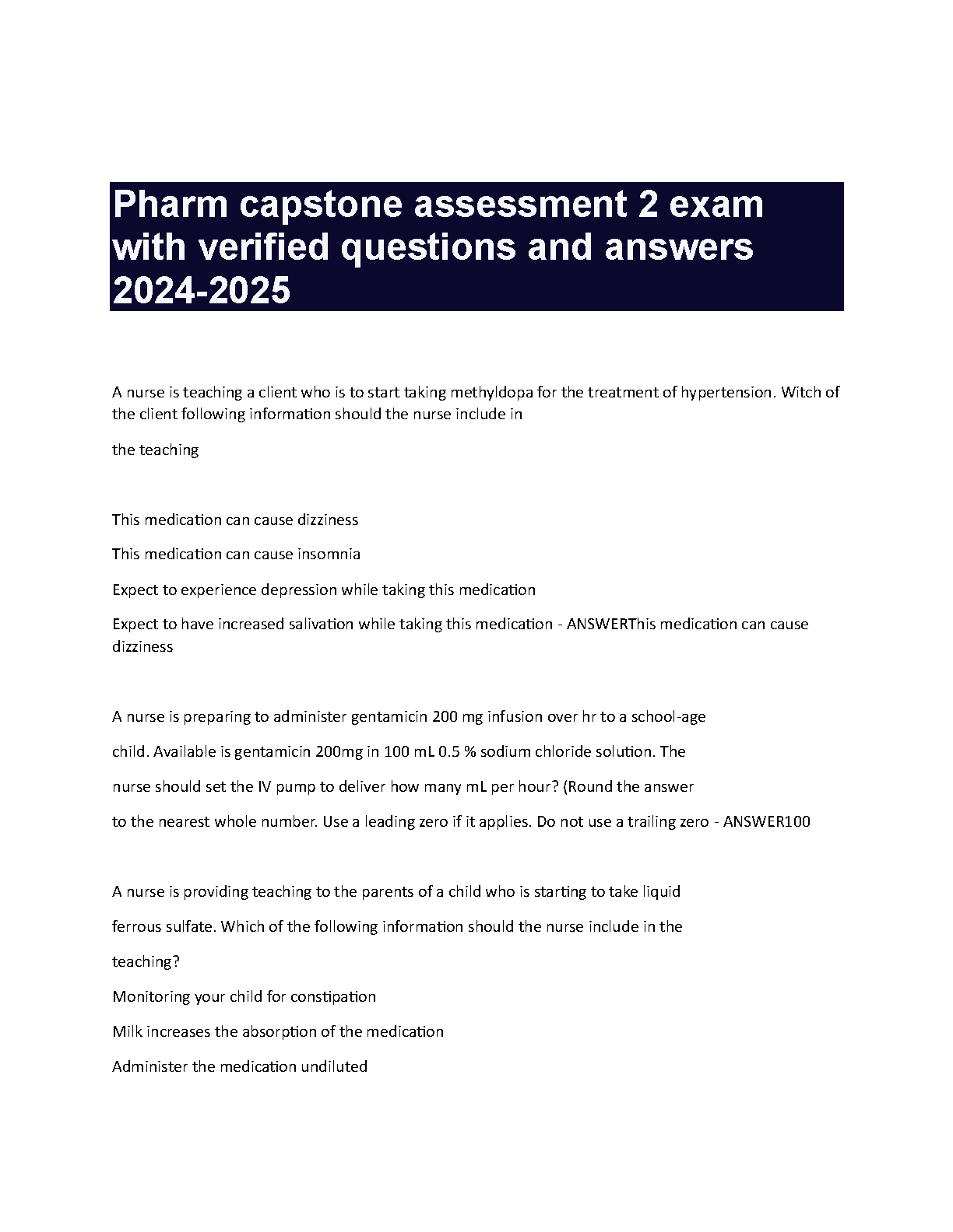 Pharm Capstone Assessment 2 Exam 2024-2025: Verified Questions and Answers