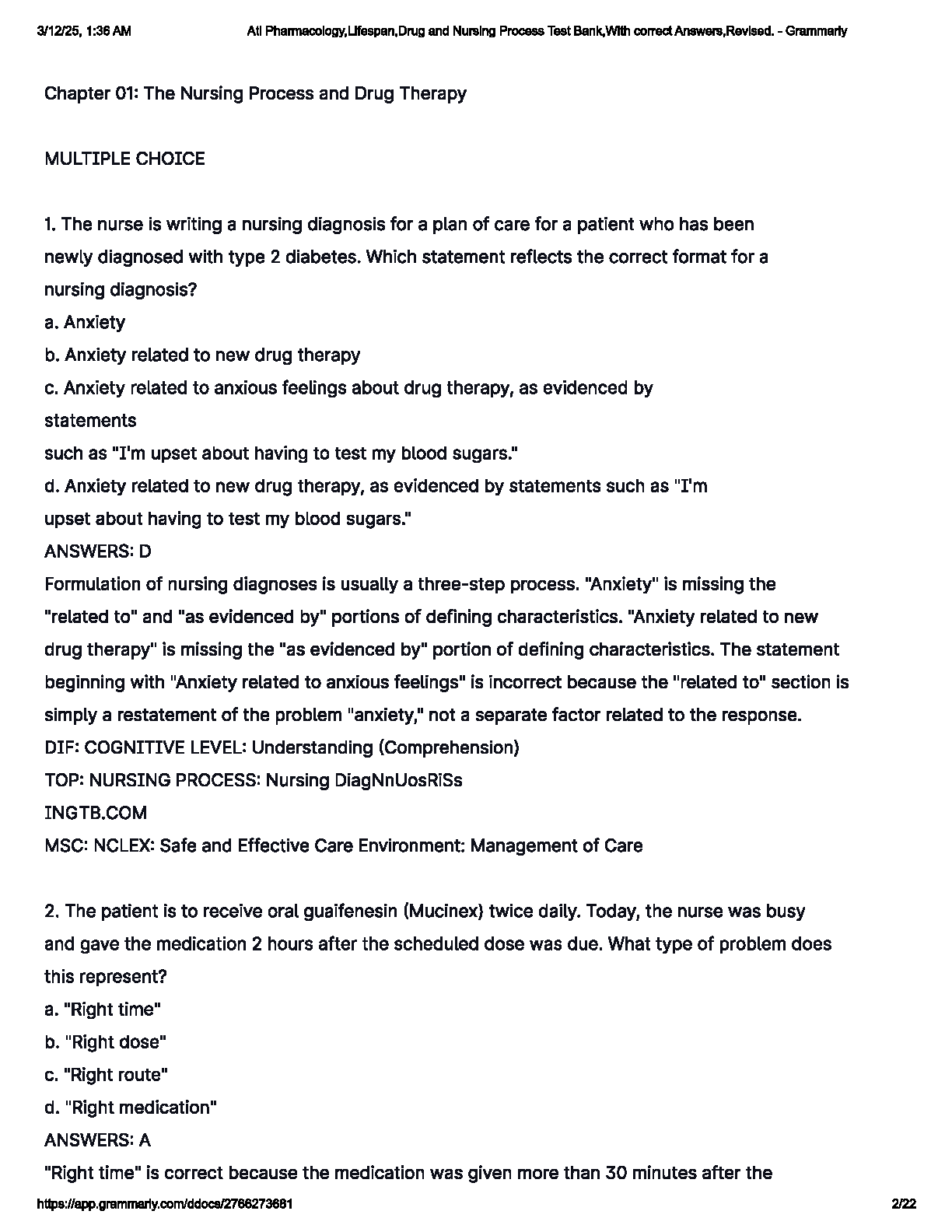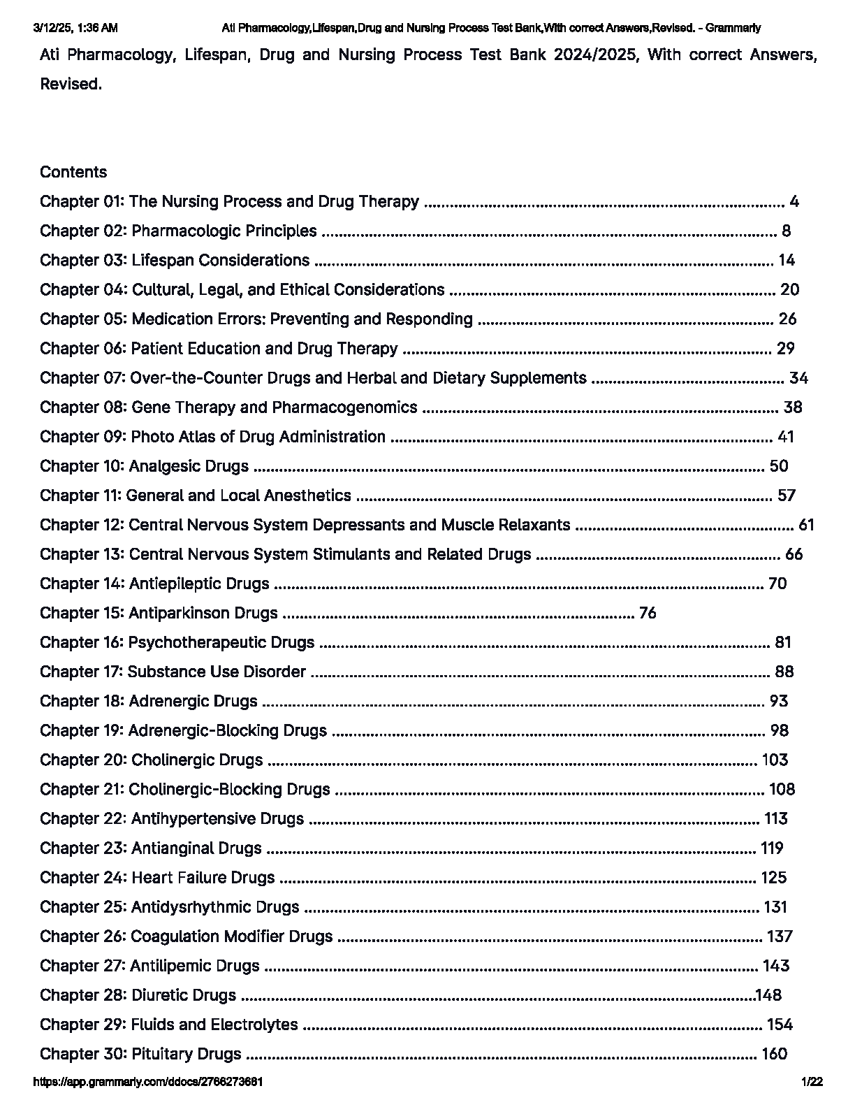 Ati Pharmacology, Lifespan, Drug and Nursing Process Test Bank 2024/2025 by unknown author