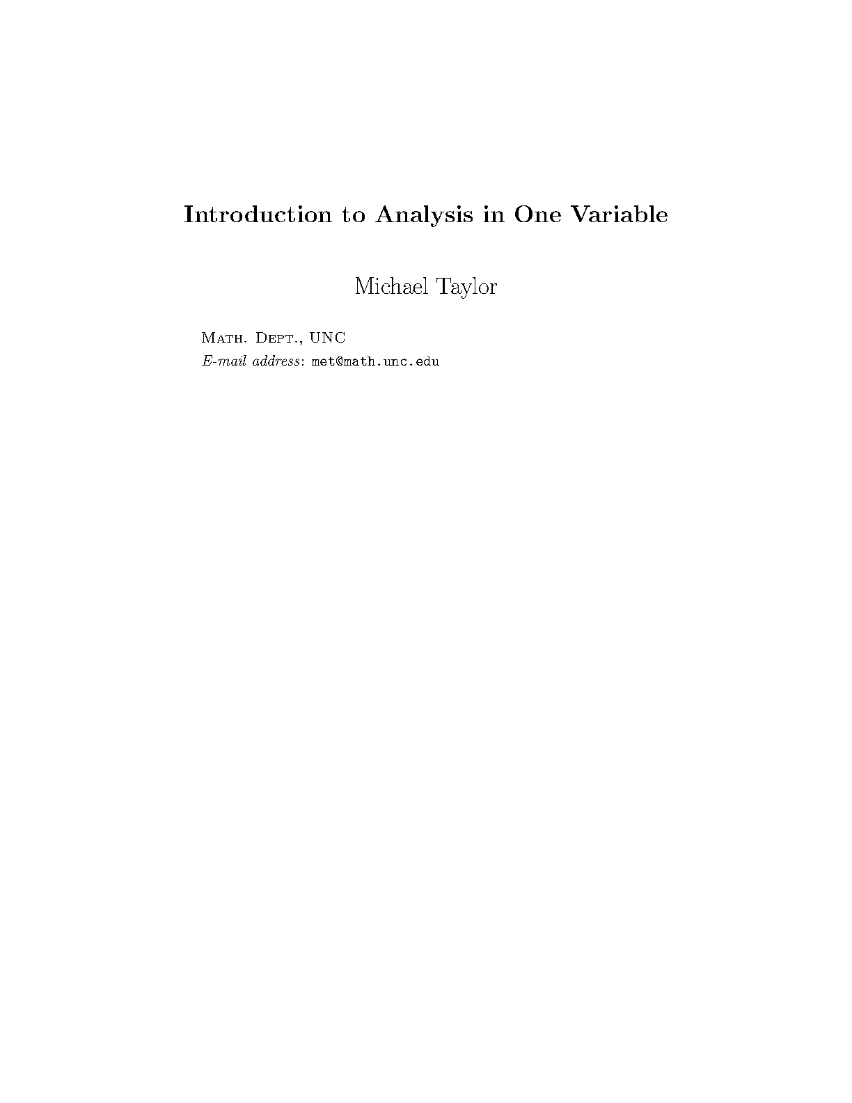 Introduction to Analysis in One Variable, 1st Edition by Michael E. Taylor