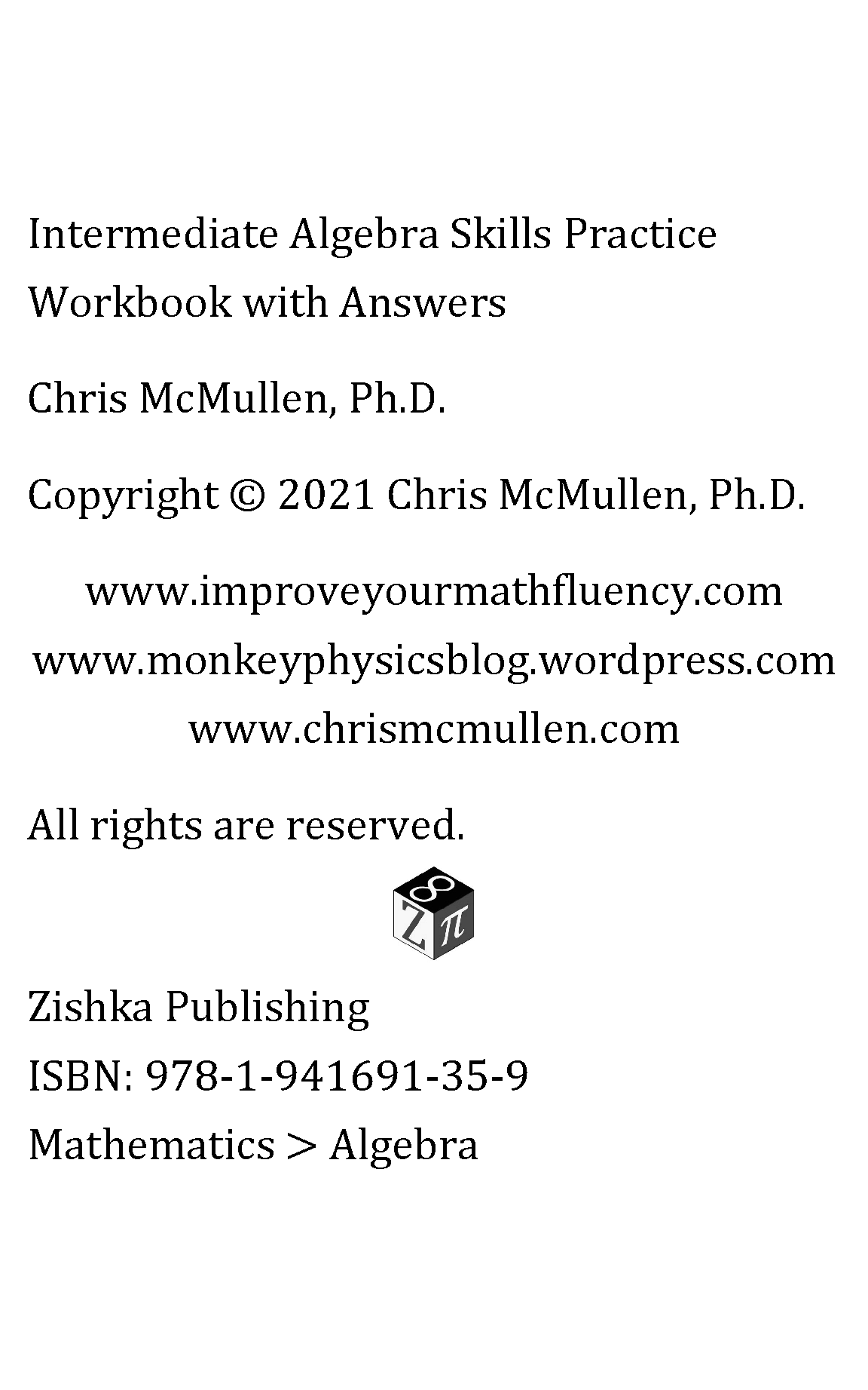 Intermediate Algebra Skills Practice Workbook with Answers by Chris McMullen, Ph.D.