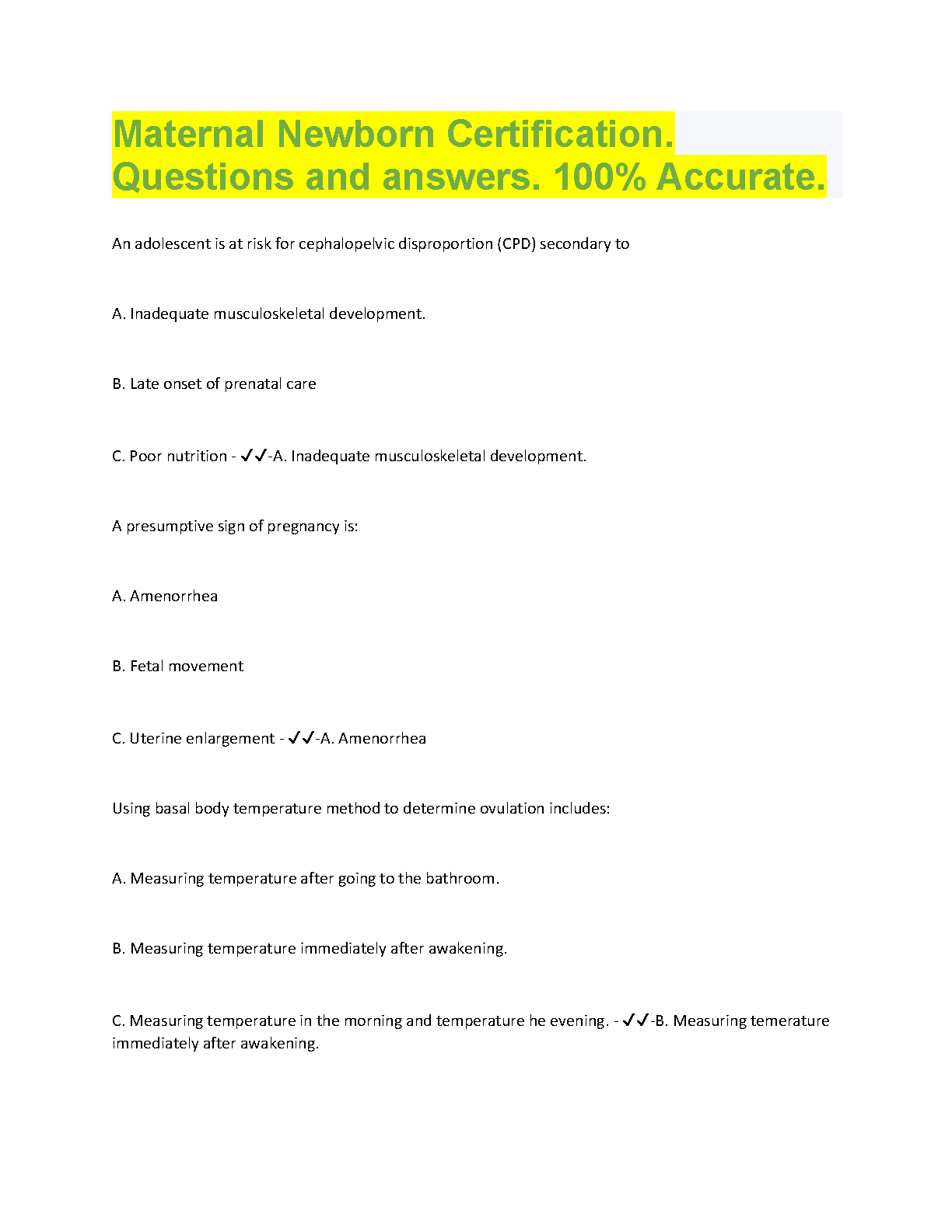 Maternal Newborn Certification. Questions and answers. 100% Accurate BRAND NEW SOLUTION!!!. DOWNLOAD on www.hackedexams.com INSTANTLY.