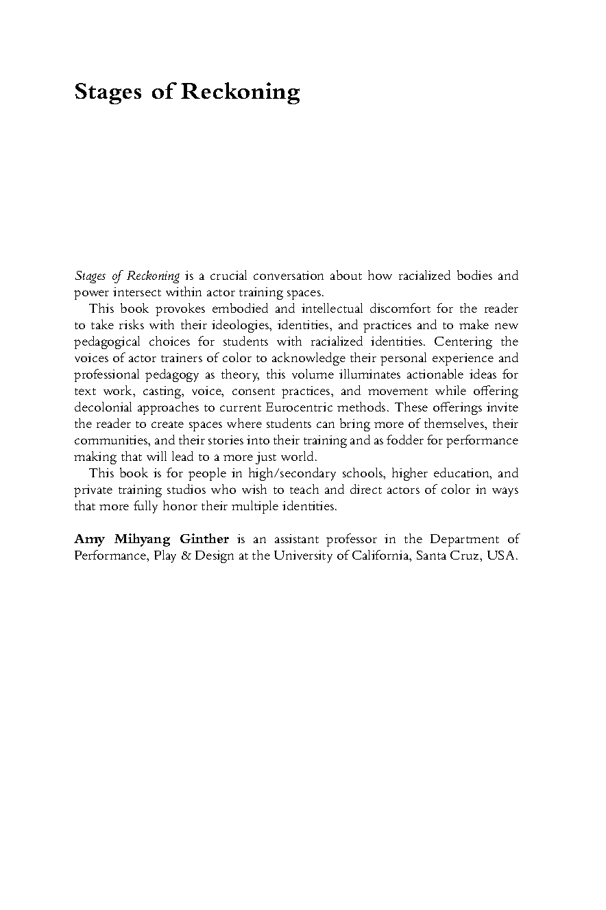 Stages of Reckoning: Antiracist and Decolonial Actor Training-Edited by Amy Mihyang Ginther