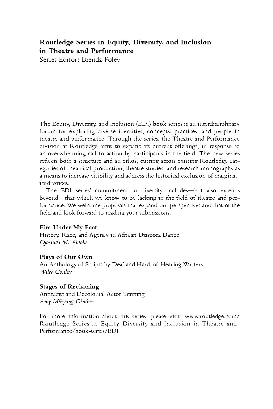 Explore the transformative journey of antiracist and decolonial actor training in this insightful edited volume by Amy Mihyang Ginther. This essential resource offers a comprehensive examination of innovative approaches to theatrical practice, fostering inclusive and equitable environments in the performing arts. Ideal for students and professionals seeking to enhance their understanding of diversity, equity, and inclusion in theatre.