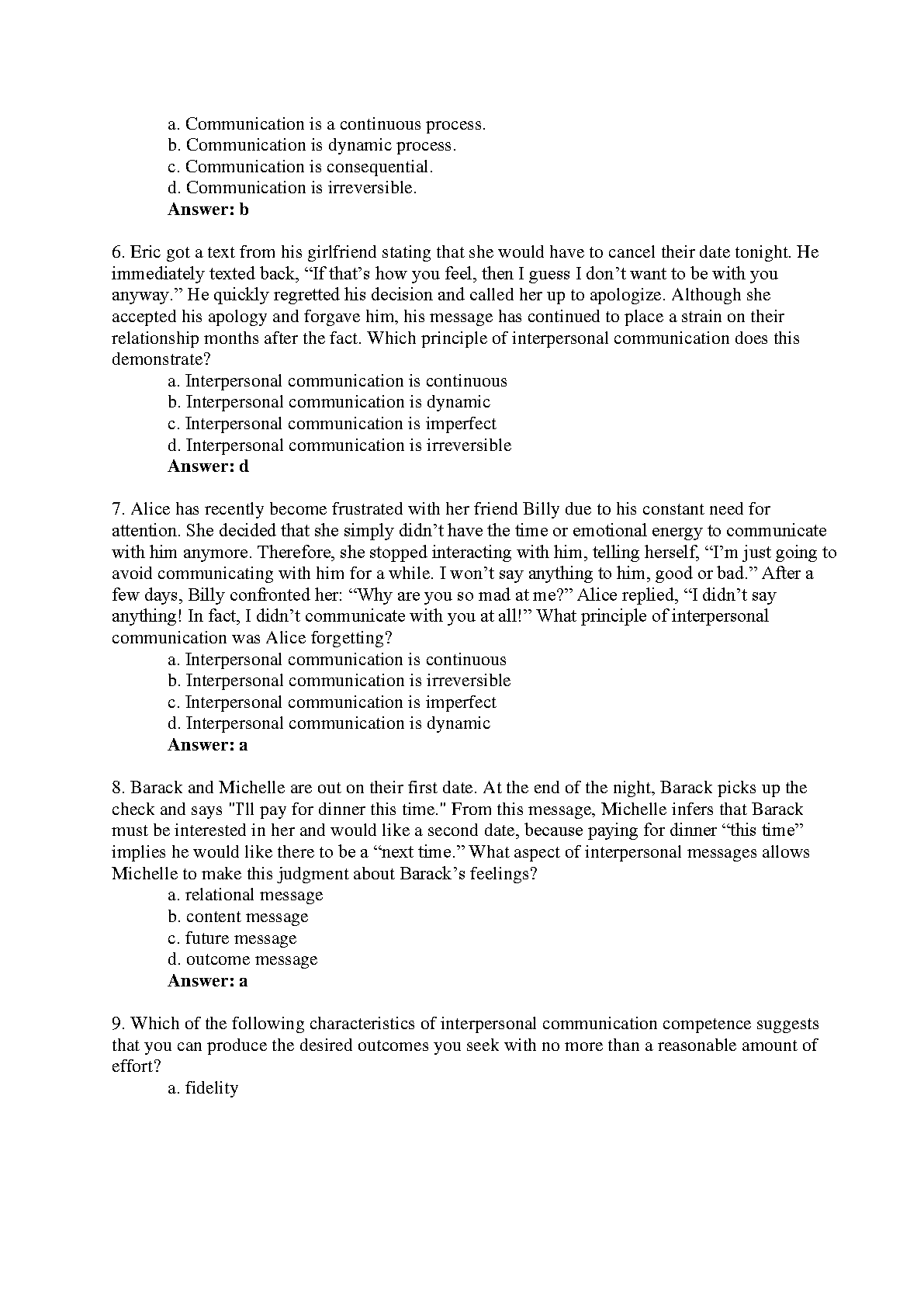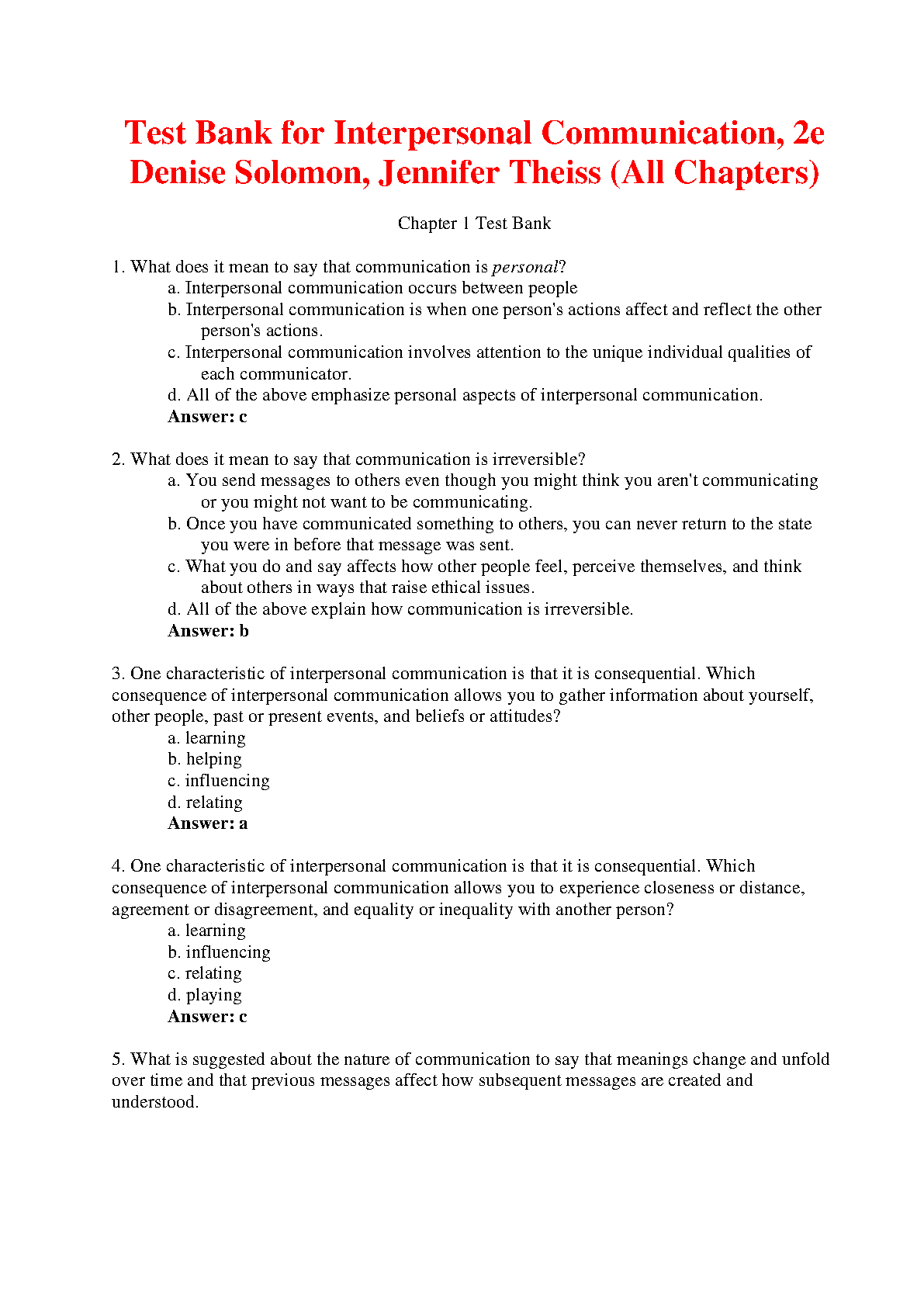 Interpersonal Communication, 2e Test Bank by Denise Solomon and Jennifer Theiss