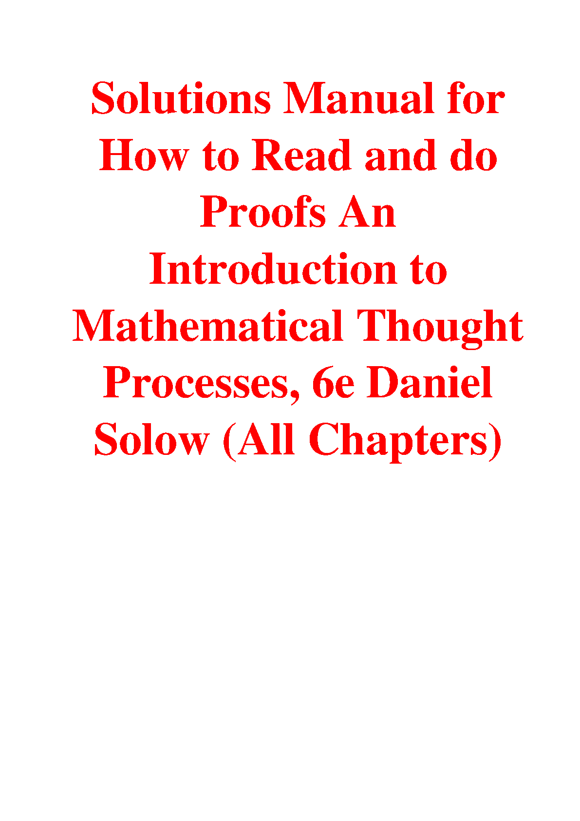 Solutions Manual for How to Read and Do Proofs: An Introduction to Mathematical Thought Processes, 6th Edition by Daniel Solow