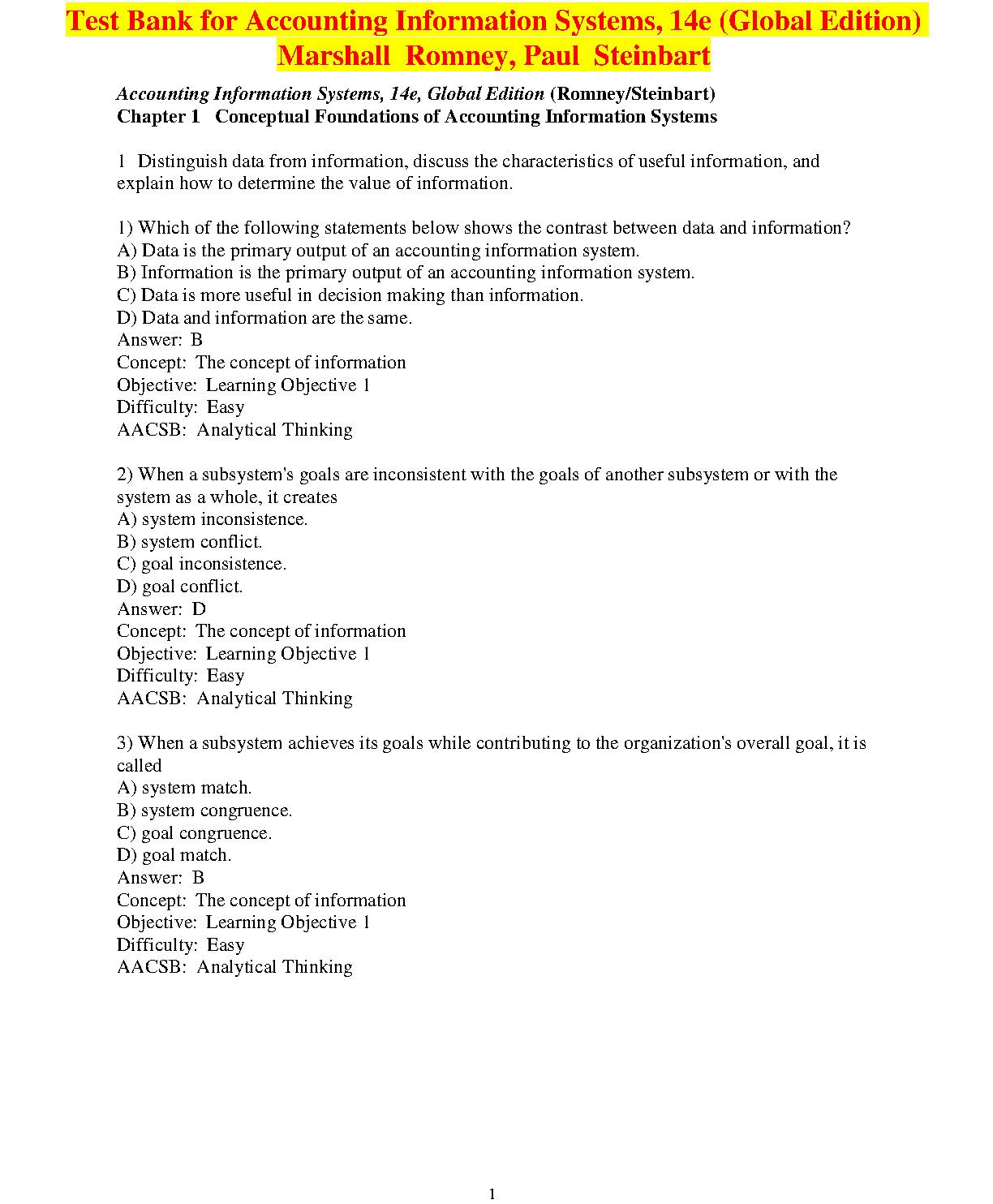Ace your Accounting Information Systems exams with this comprehensive test bank for the 14th Global Edition by Romney and Steinbart. This resource is designed to help students master the key concepts and achieve exam success on their first attempt.