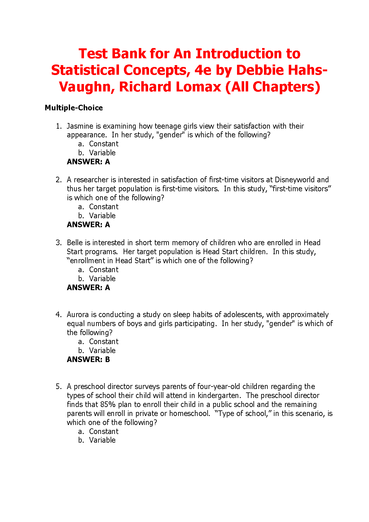 Test Bank for An Introduction to Statistical Concepts, 4th Edition by Debbie Hahs-Vaughn and Richard Lomax (All Chapters)