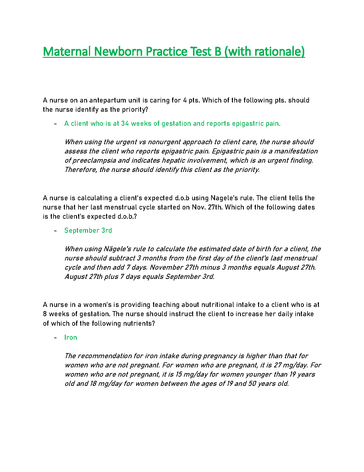 Maternal Newborn Practice Test B (with Rationale) LATEST UPDATE 2023!!. DOWNLOAD on www.hackedexams.com INSTANTLY.