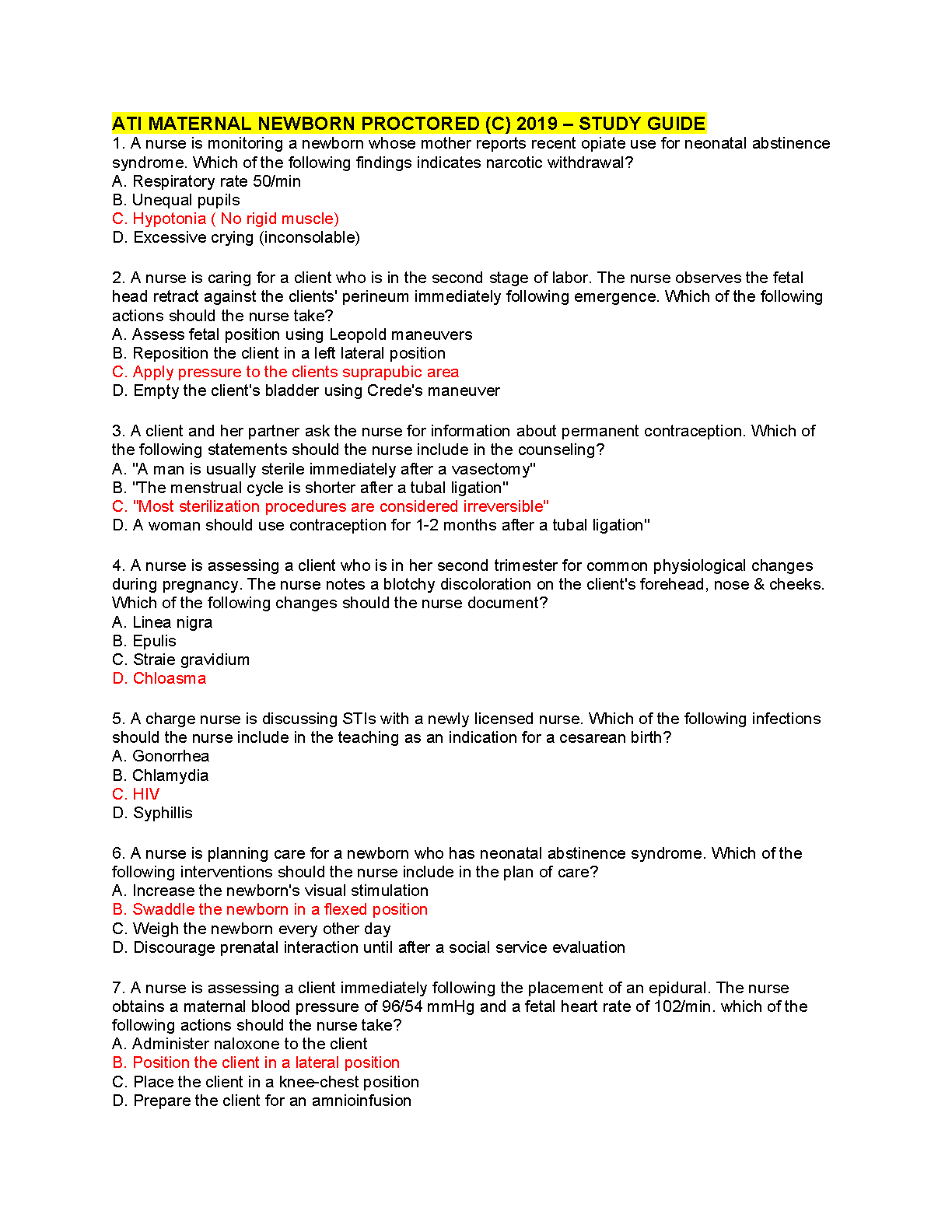 ATI MATERNAL NEWBORN PROCTORED – RECENTLY UPDATED STUDY GUIDE