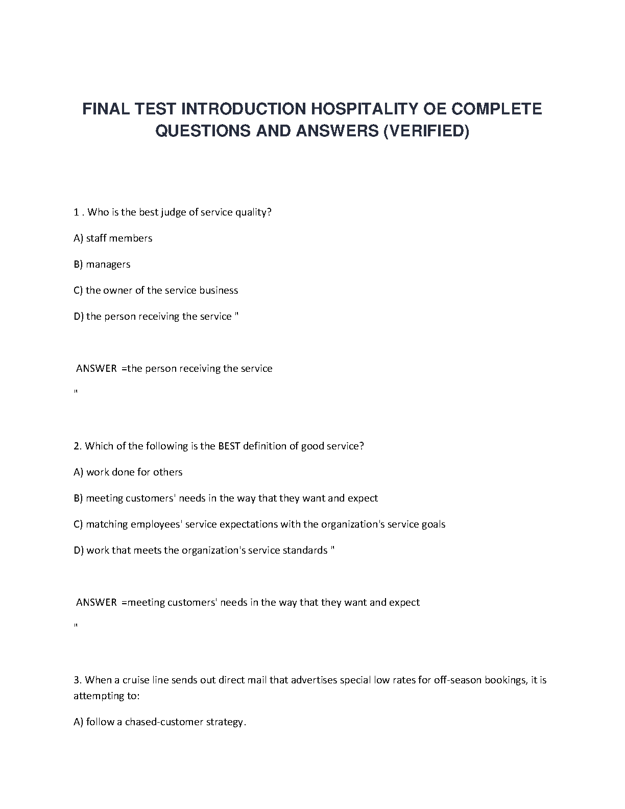 Ace your Introduction to Hospitality final exam with this verified question and answer resource. This comprehensive guide covers key concepts and helps students avoid resits, ensuring first-attempt success in the 2024/2025 academic year.
