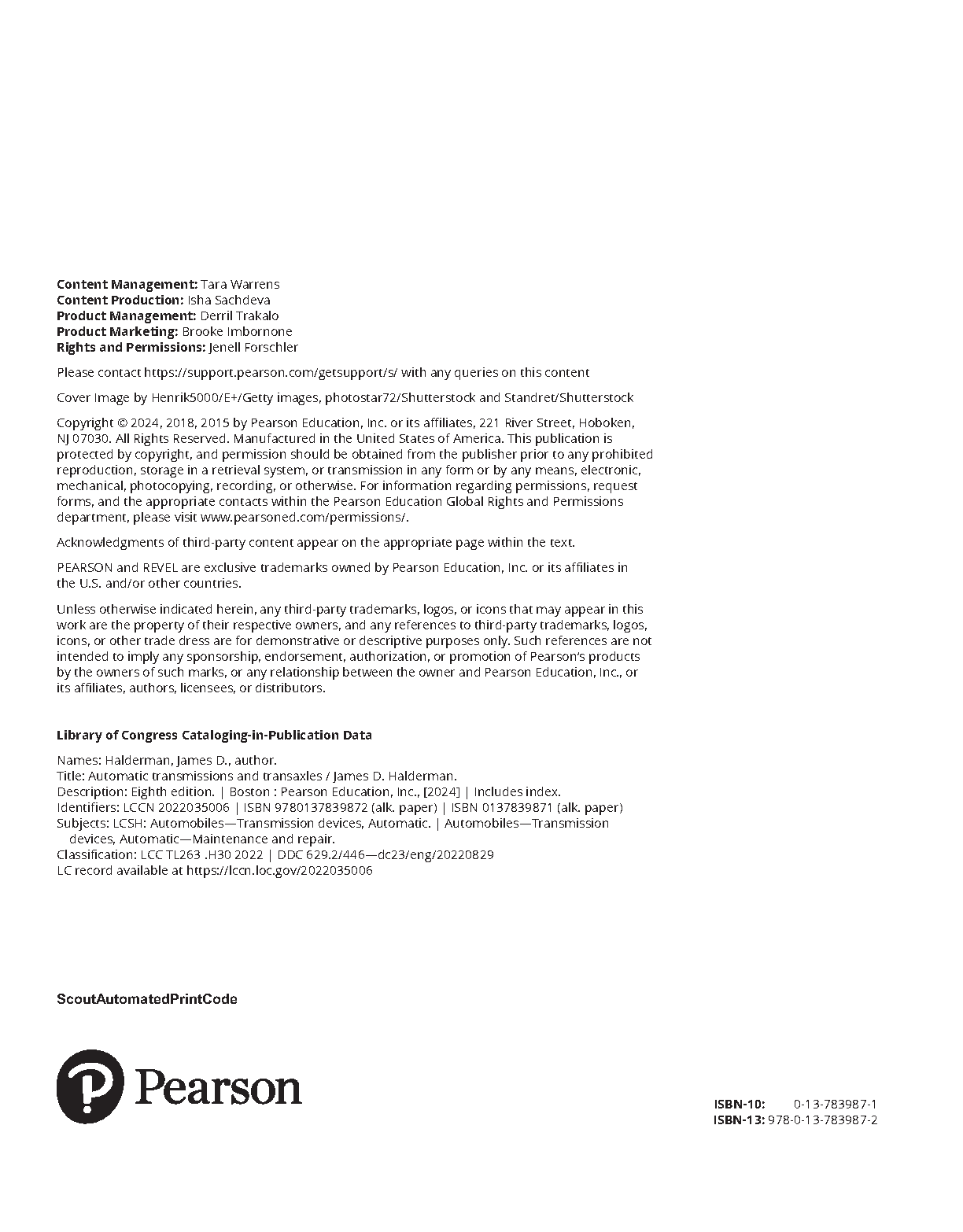 Automatic Transmissions and Transaxles, Eighth Edition by James D. Halderman