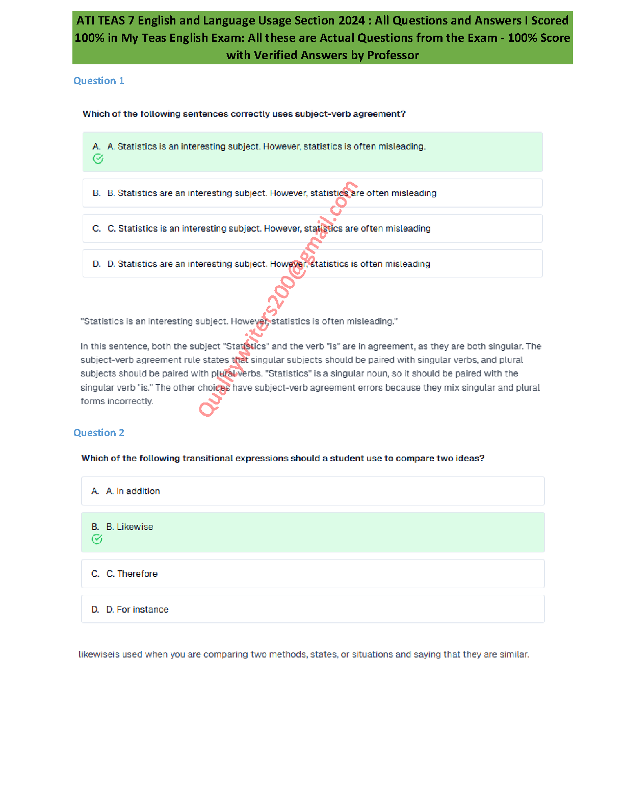 Ace your ATI TEAS 7 English and Language Usage section exam with this 2024 edition. Professor-verified answers guarantee a first-attempt pass, saving you time and stress.