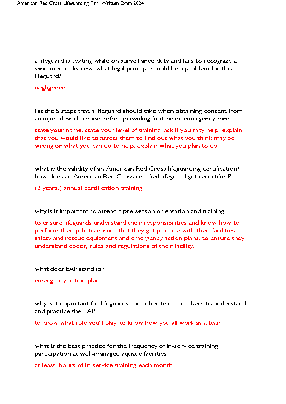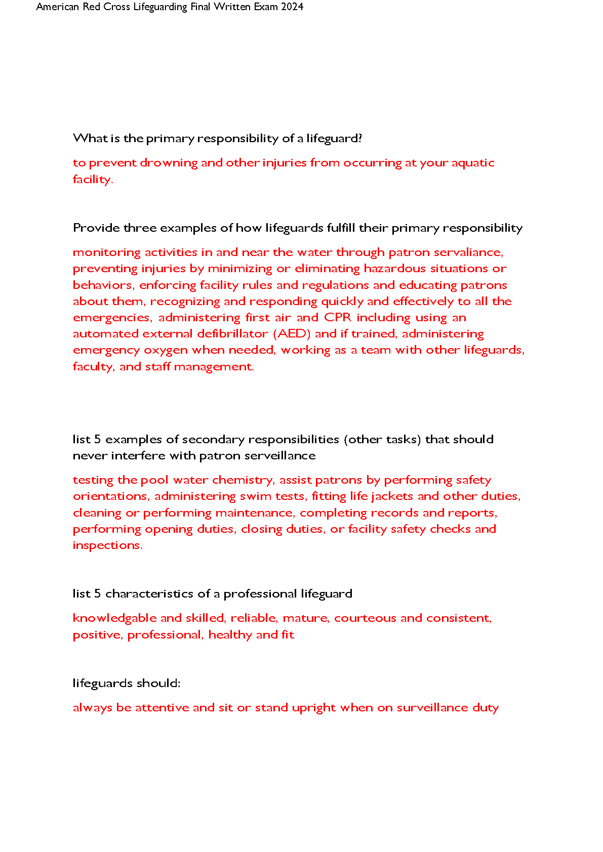American Red Cross Lifeguarding Final Written Exam Prep 2024-2025: Ace Your Exam on the First Try