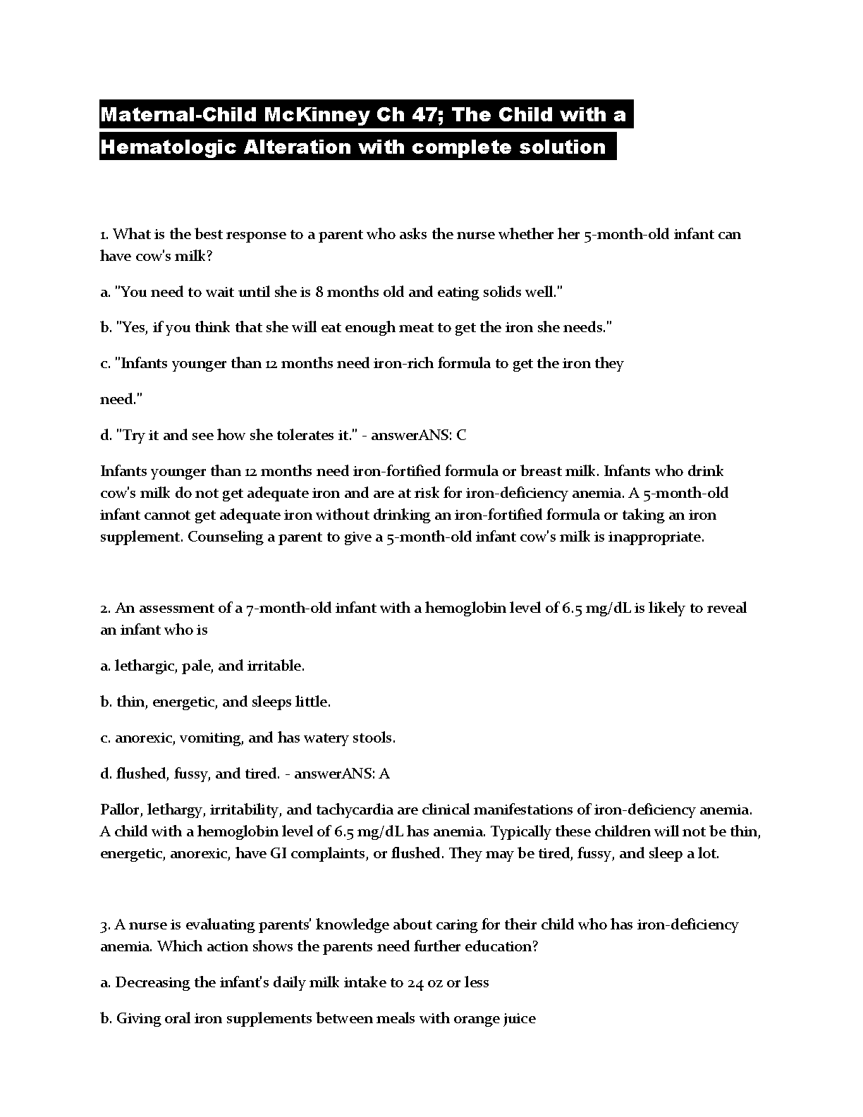 Maternal-Child McKinney Ch 47; The Child with a Hematologic Alteration with complete solution RATED A+. DOWNLOAD on www.hackedexams.com INSTANTLY.