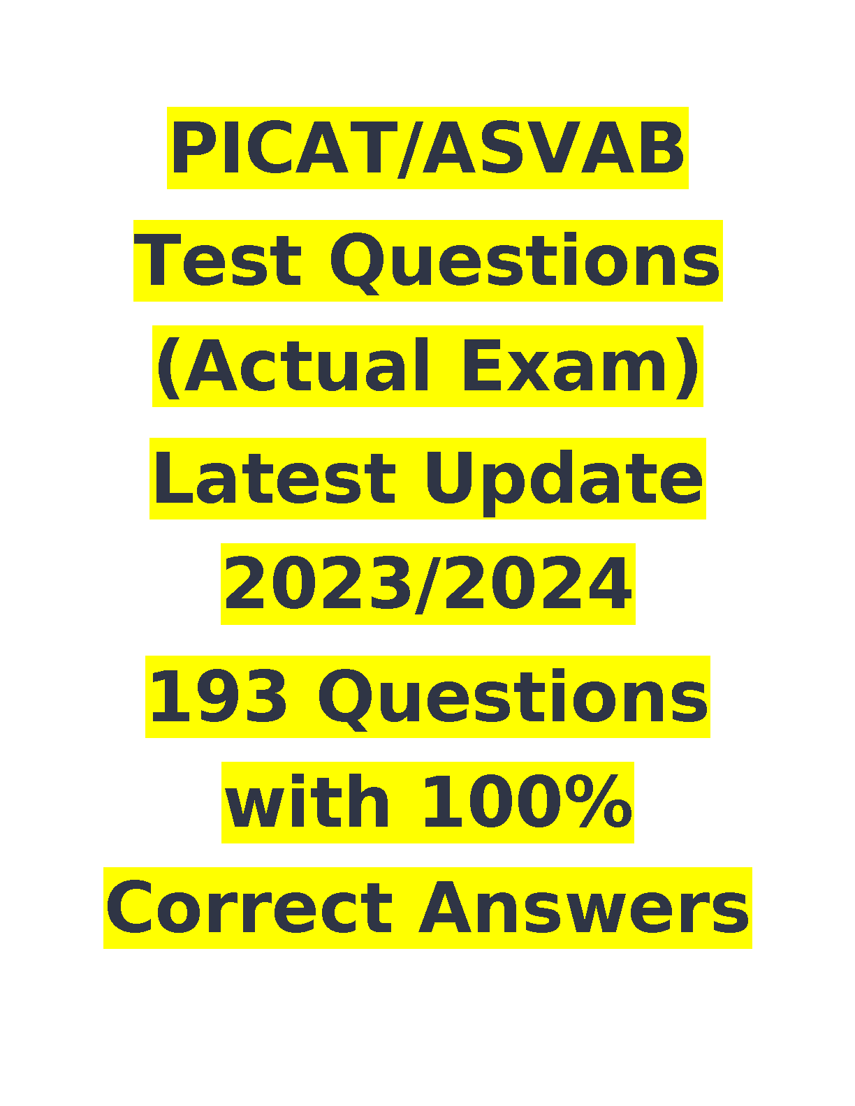 2024/2025 PICAT/ASVAB Test Questions and Answers: 193 Actual Exam Questions with 100% Correct Answers for First-Attempt Success