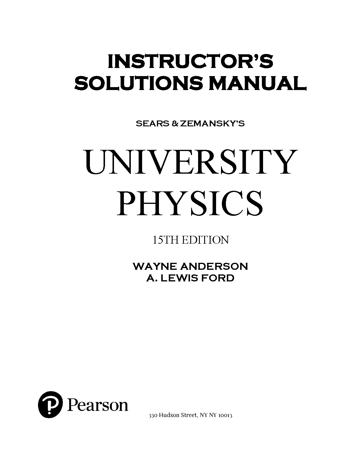 University Physics 15th Edition Instructor's Solutions Manual by Hugh D. Young, Roger A. Freedman, A. Lewis Ford, and Wayne Anderson