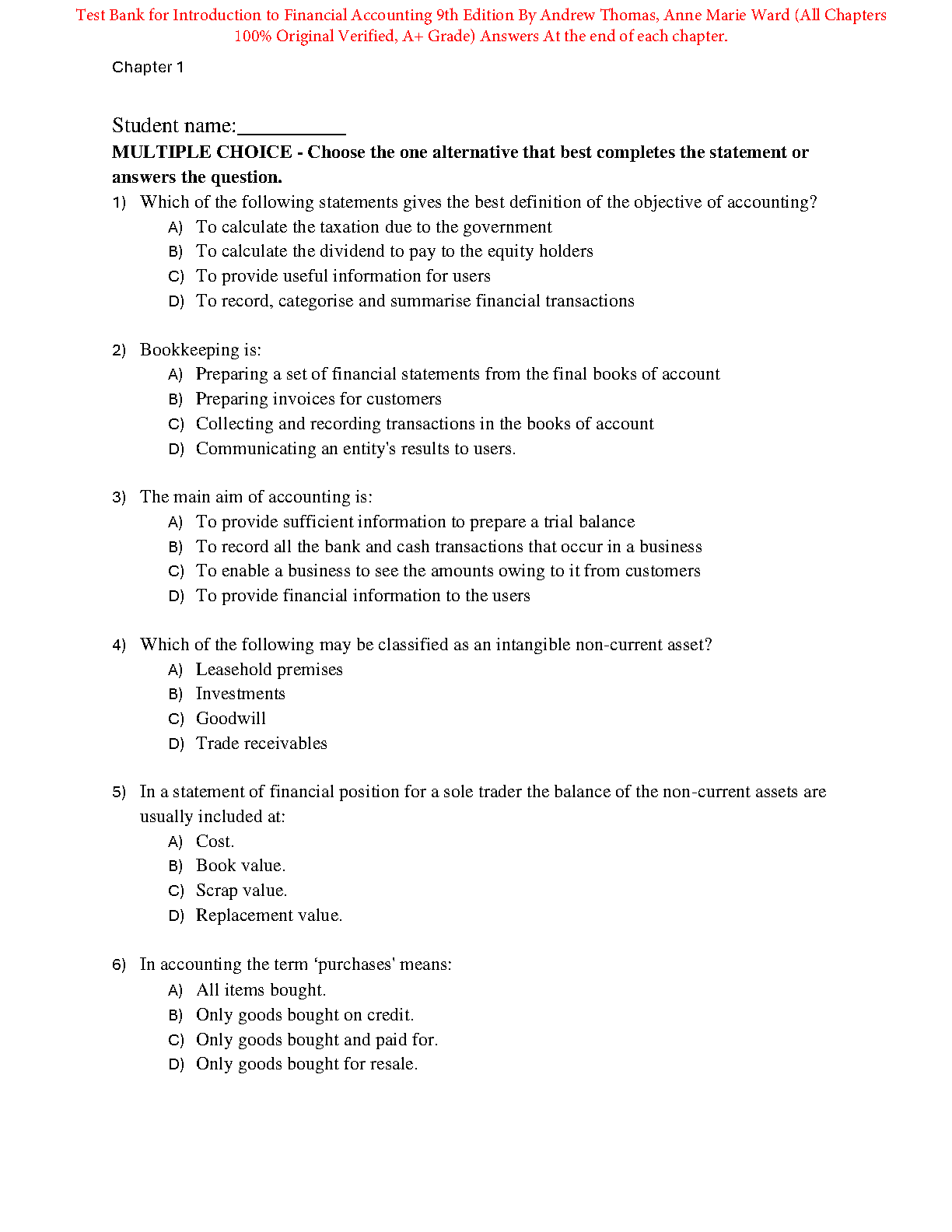 Introduction to Financial Accounting 9th Edition Test Bank by Andrew Thomas and Anne Marie Ward