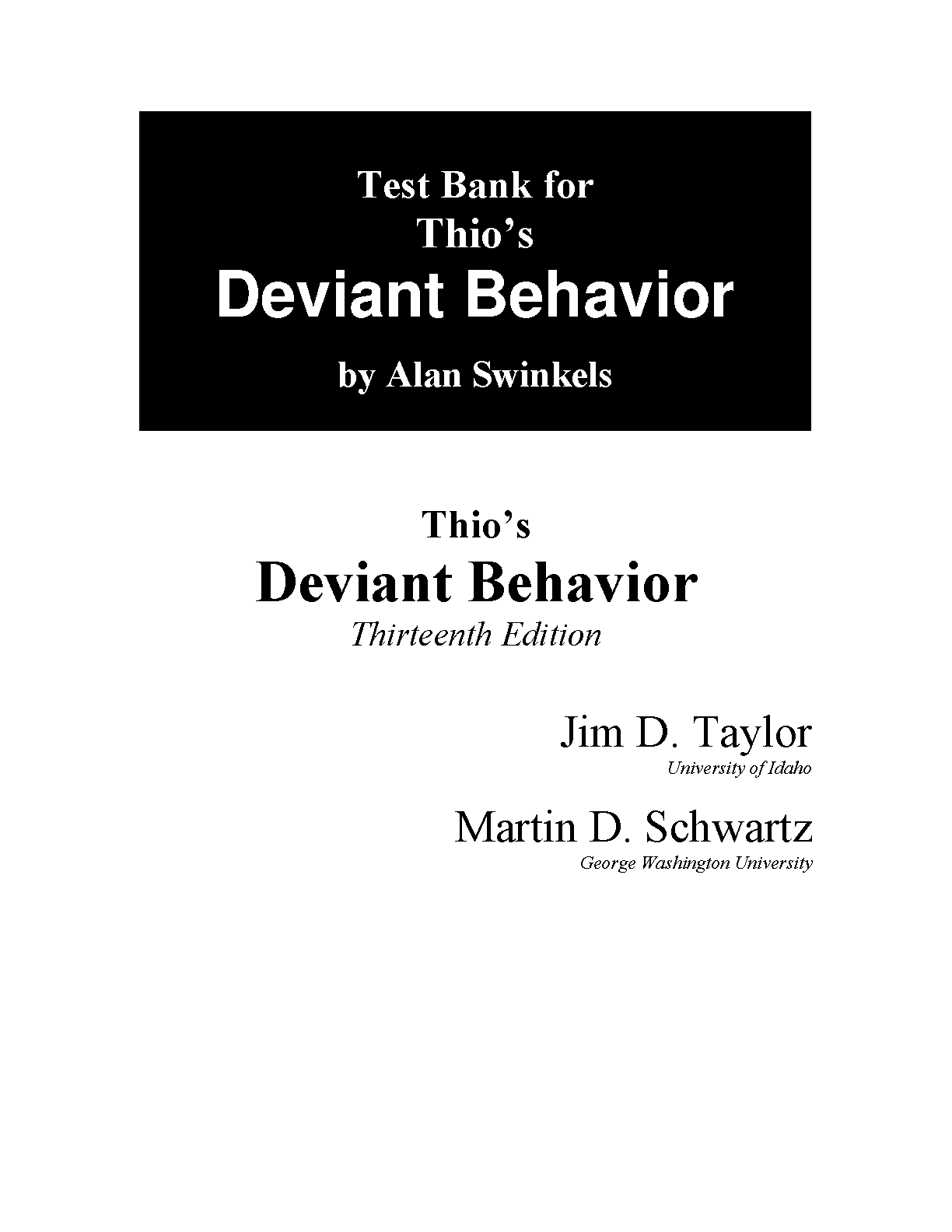 Thio's Deviant Behavior Thirteenth Edition Test Bank by Jim D. Taylor and Martin D. Schwartz