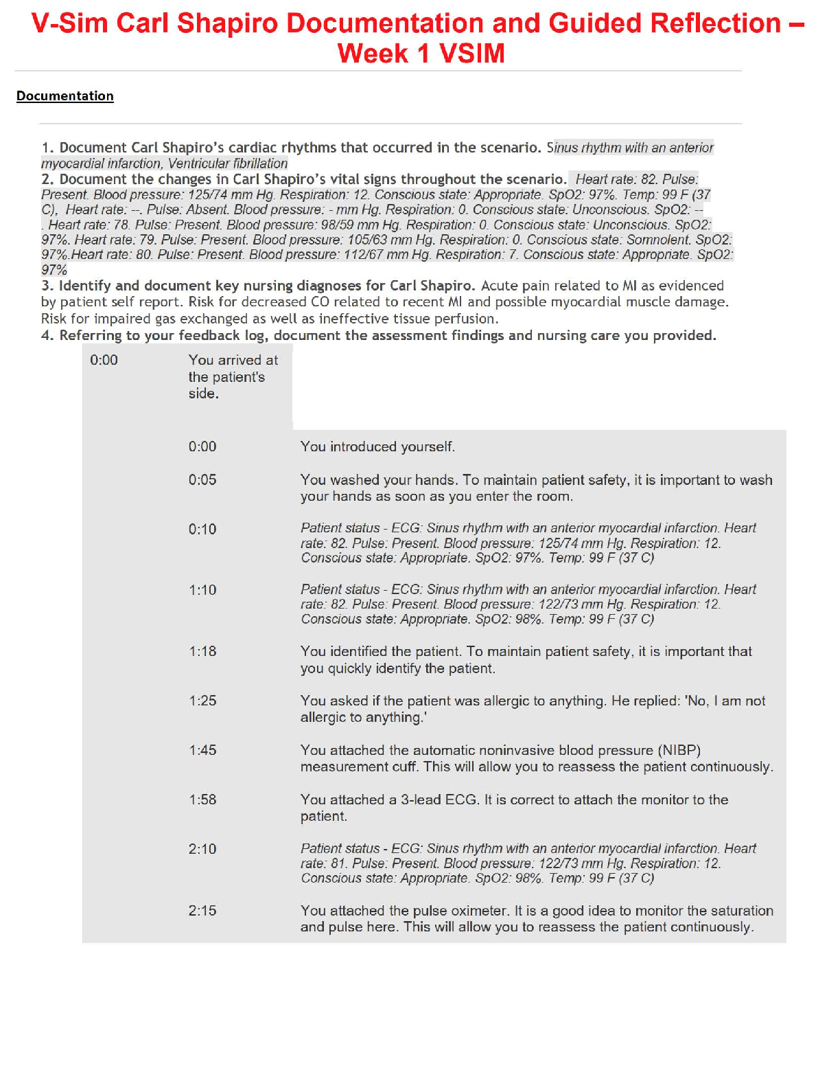 V-Sim Carl Shapiro Documentation and Guided Reflection - Week 1 VSIM: A 2024/2025 Guide for Nursing Students to Ace Exams on the First Attempt