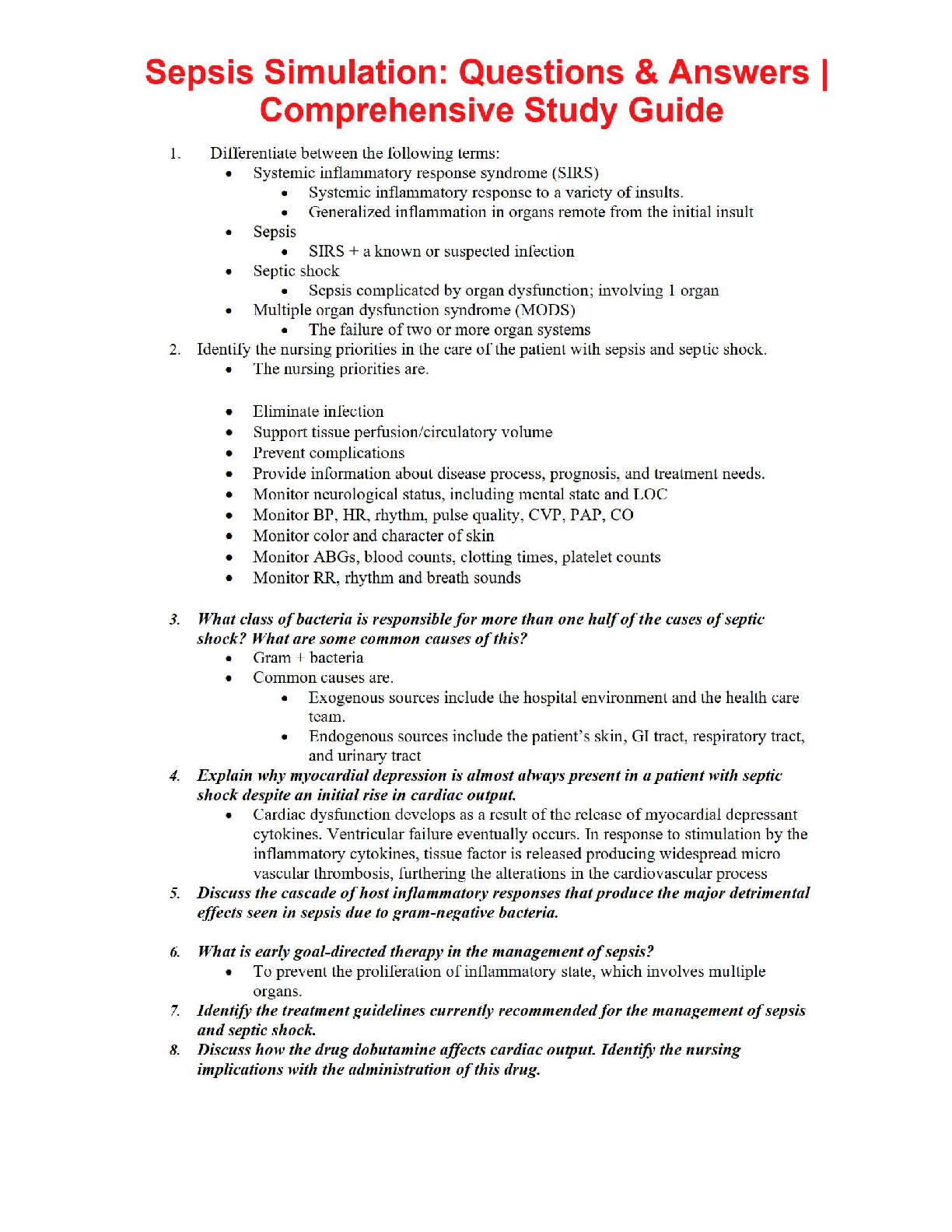 Sepsis Simulation: Questions & Answers Comprehensive Study Guide for Nursing Students - 2024/2025 Edition