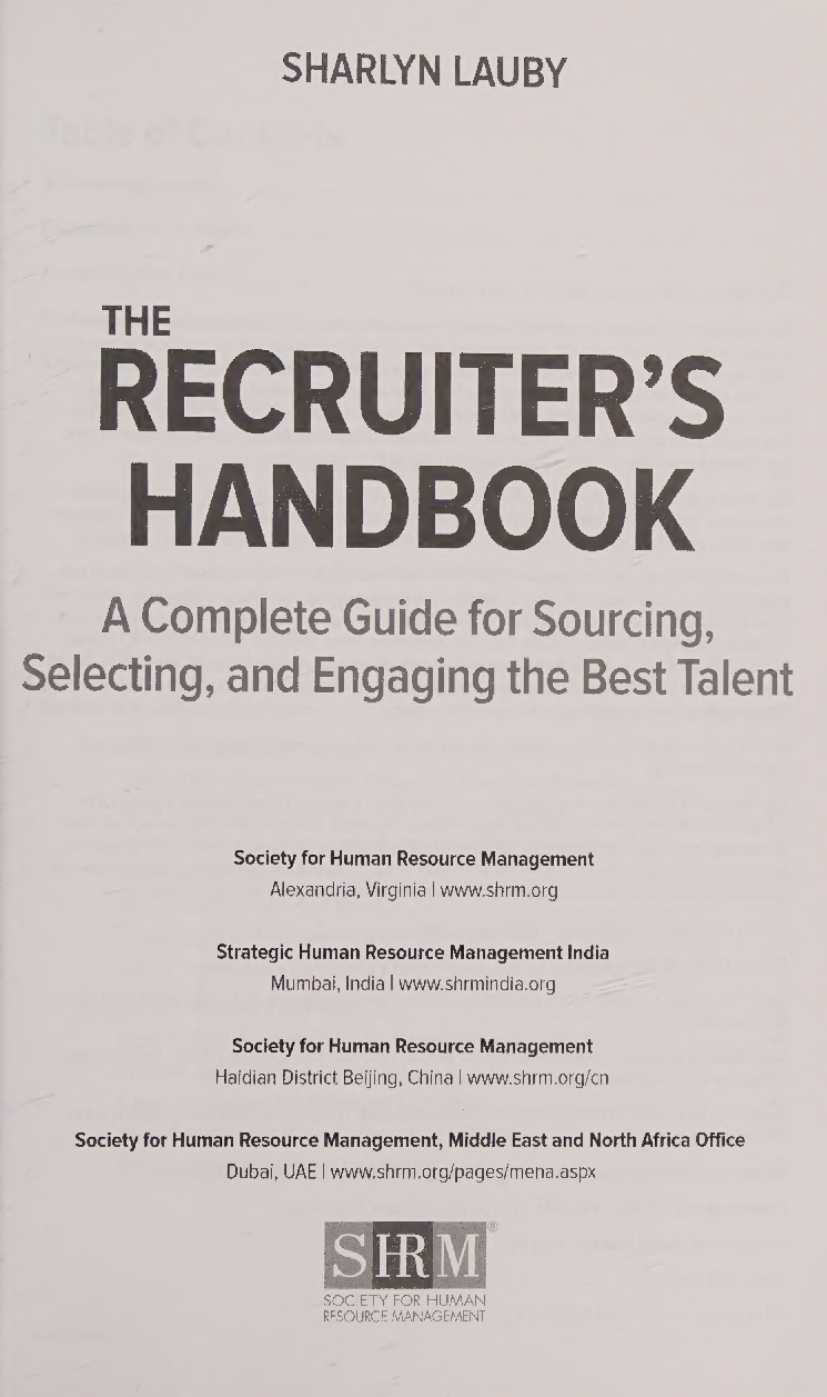 The Recruiter's Handbook: A Complete Guide for Sourcing, Selecting, and Engaging the Best Talent by Sharlyn Lauby