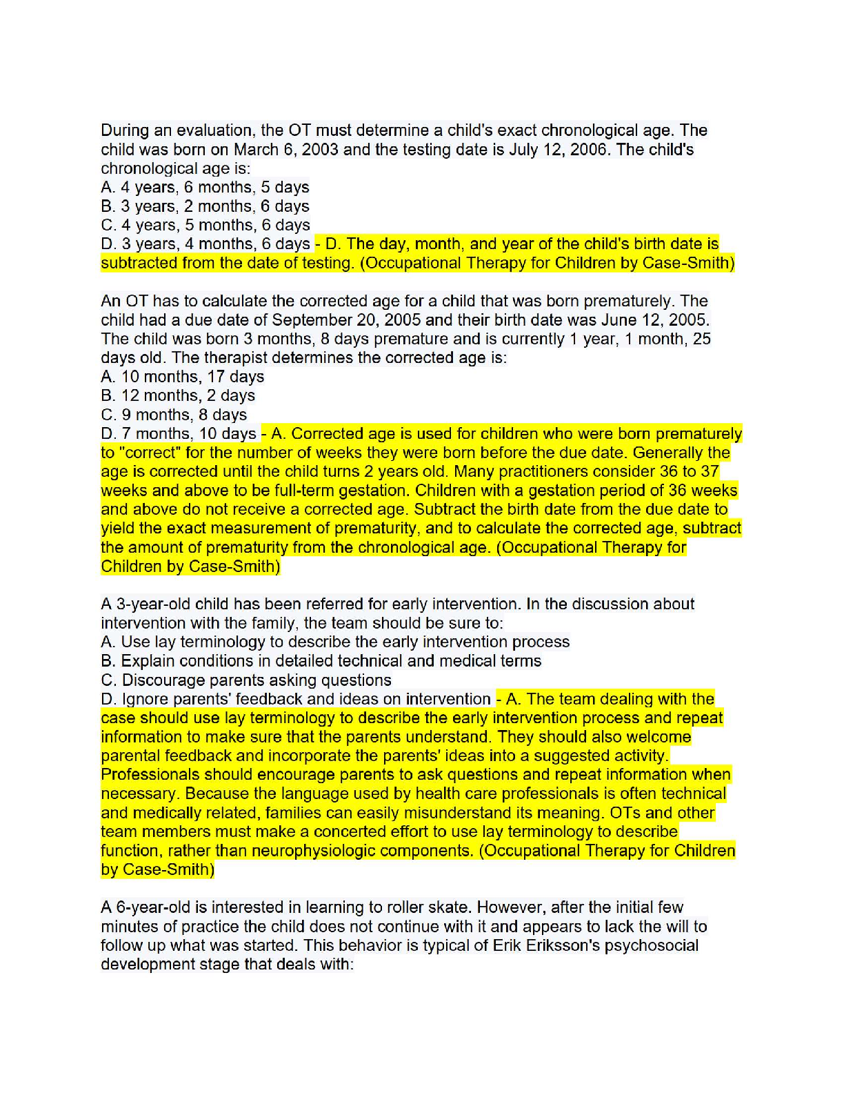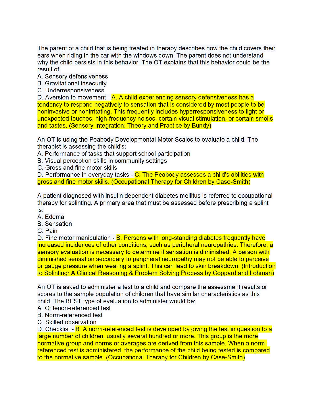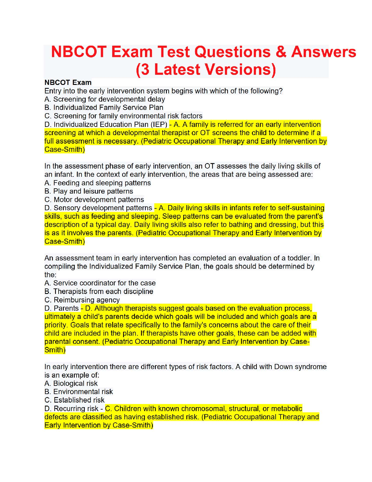 NBCOT Exam Test Questions & Answers (3 Latest Versions) by Case-Smith