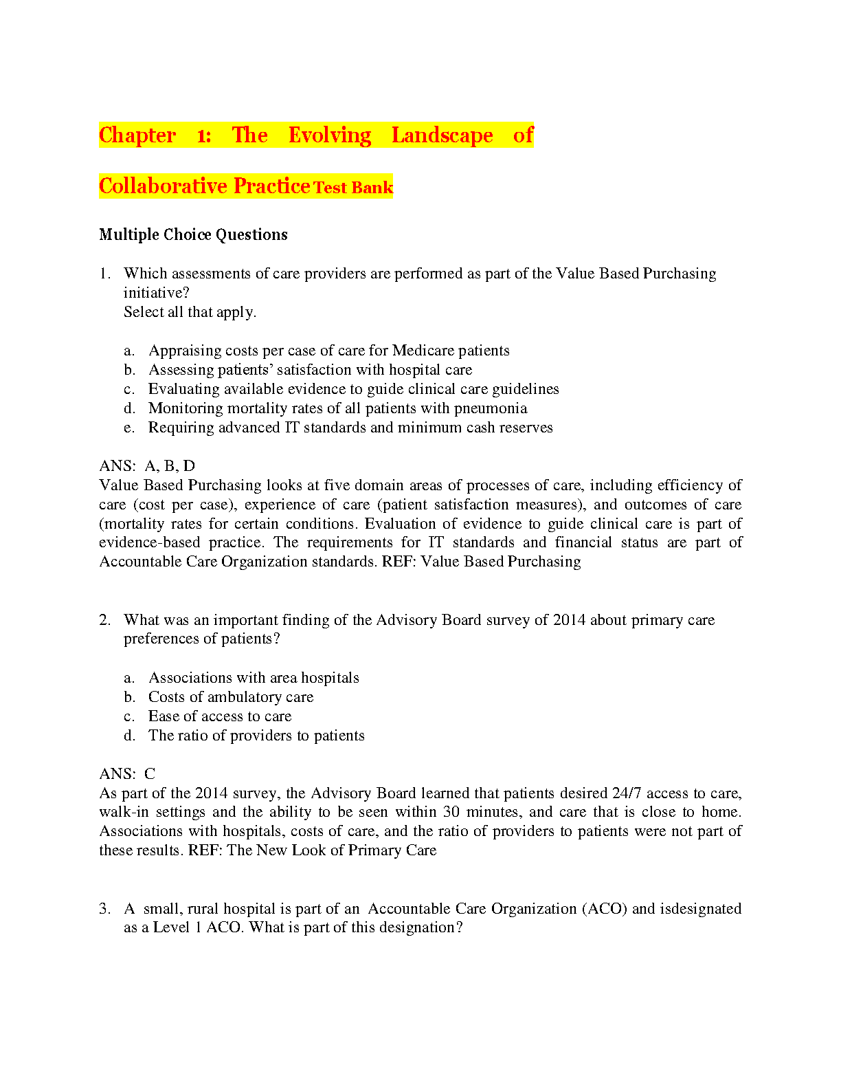 Chapter 1: The Evolving Landscape of Collaborative Practice Test Bank RATED A+