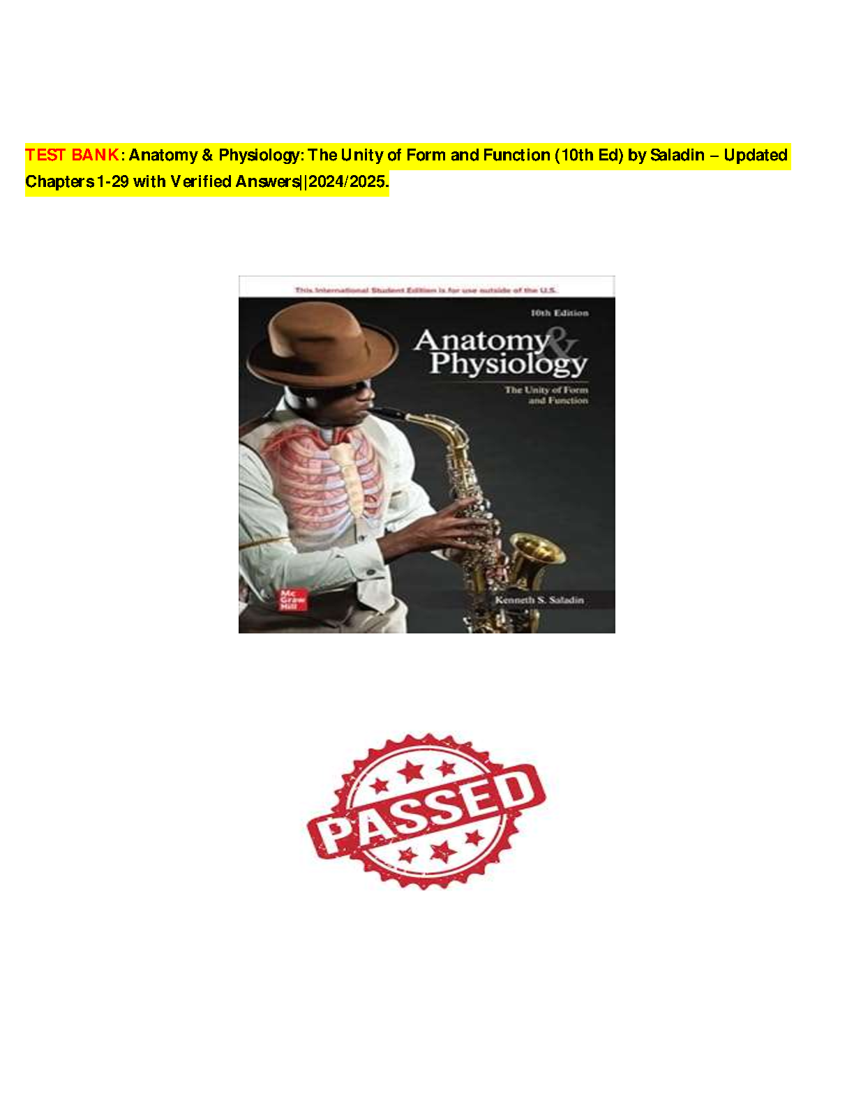 Ace your Anatomy & Physiology exams on the first try with this updated 2024/2025 test bank for Saladin's 10th edition. Chapters 1-29 are covered with verified answers, ensuring comprehensive exam preparation and avoiding resits.