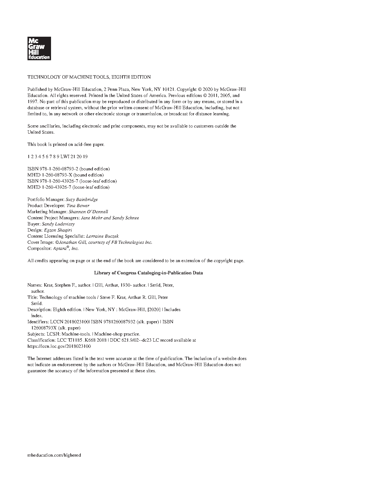 Ace your exams on the first try with this comprehensive guide to the Technology of Machine Tools, Eighth Edition, by Steve F. Krara, Arthur R. Gill, and Peter Smid. This invaluable resource is designed to help students master the subject matter and avoid resits, ensuring academic success for the 2024-2025 academic year.