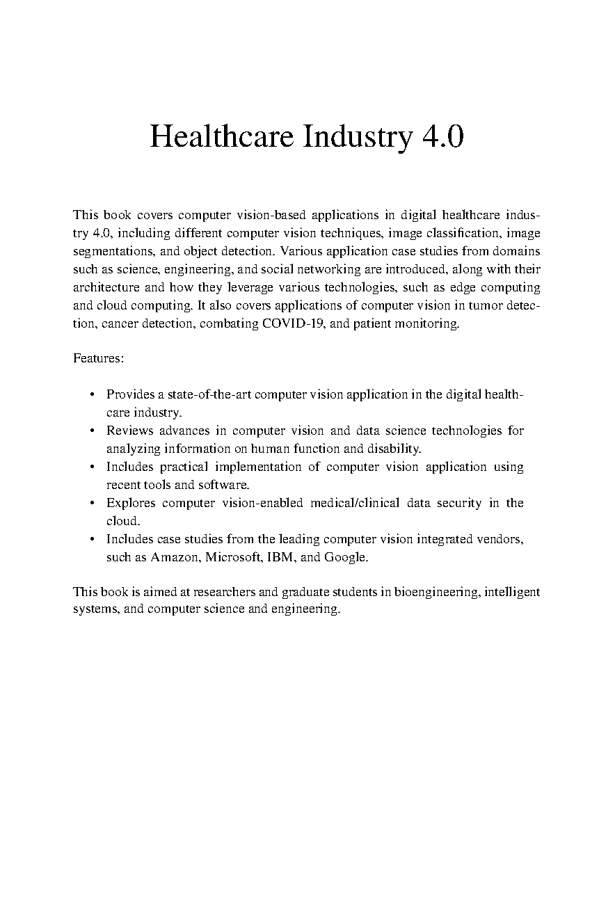 Healthcare Industry 4.0: Computer Vision-Aided Data Analytics, Edited by P. Karthikeyan, Polinpapilinho F. Katina, and R. Rajagopal