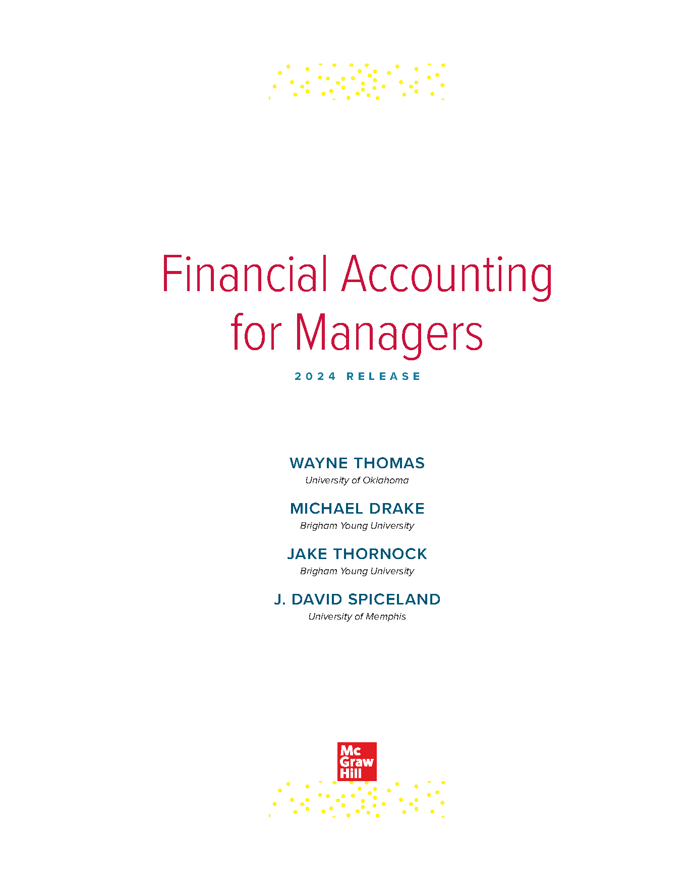 Financial Accounting for Managers, 2024 International Student Edition by Wayne Thomas, Michael Drake, Jake Thornock, and J. David Spiceland