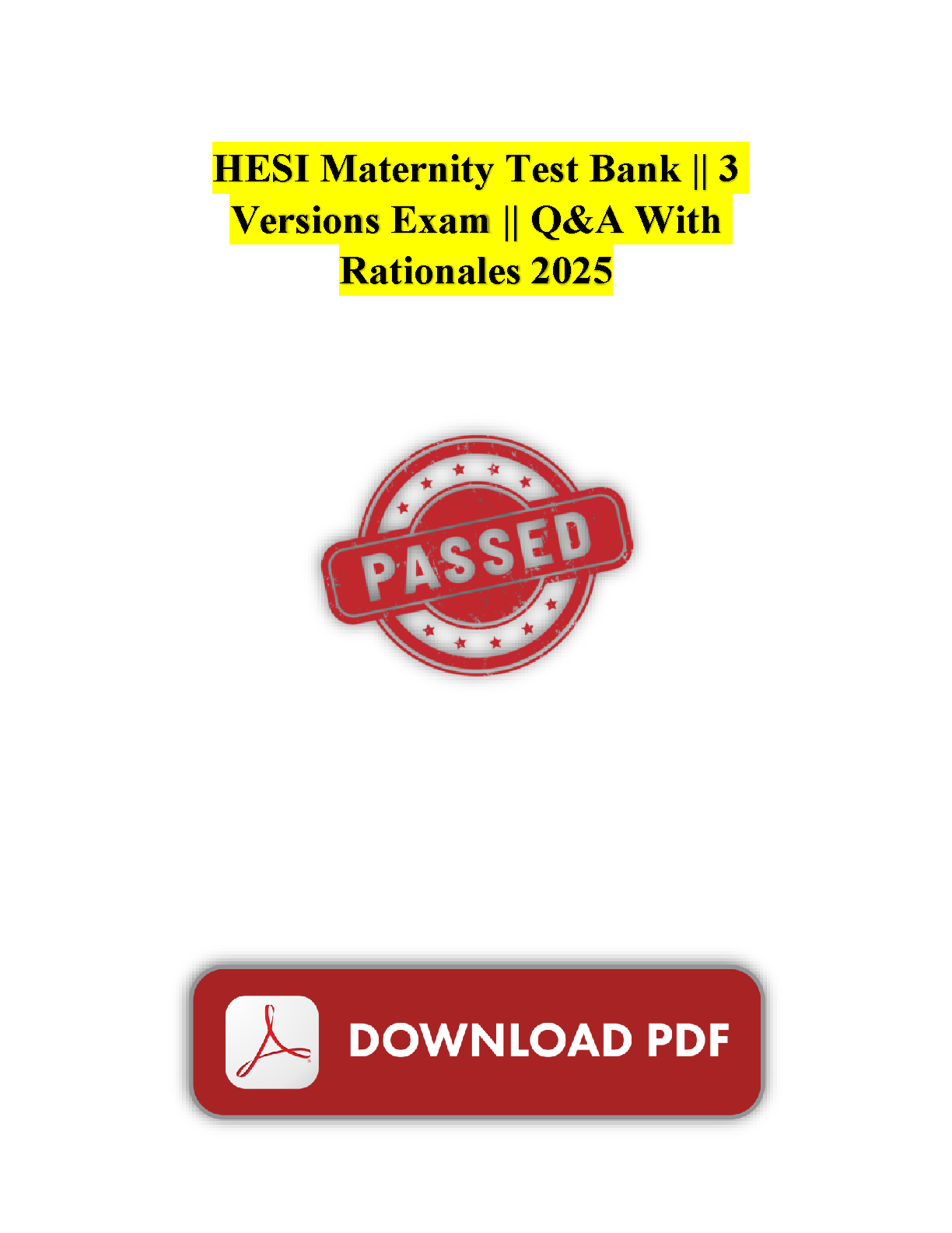 HESI Maternity Test Bank 2025: 3 Versions Exam with Q&A and Rationales by HESI