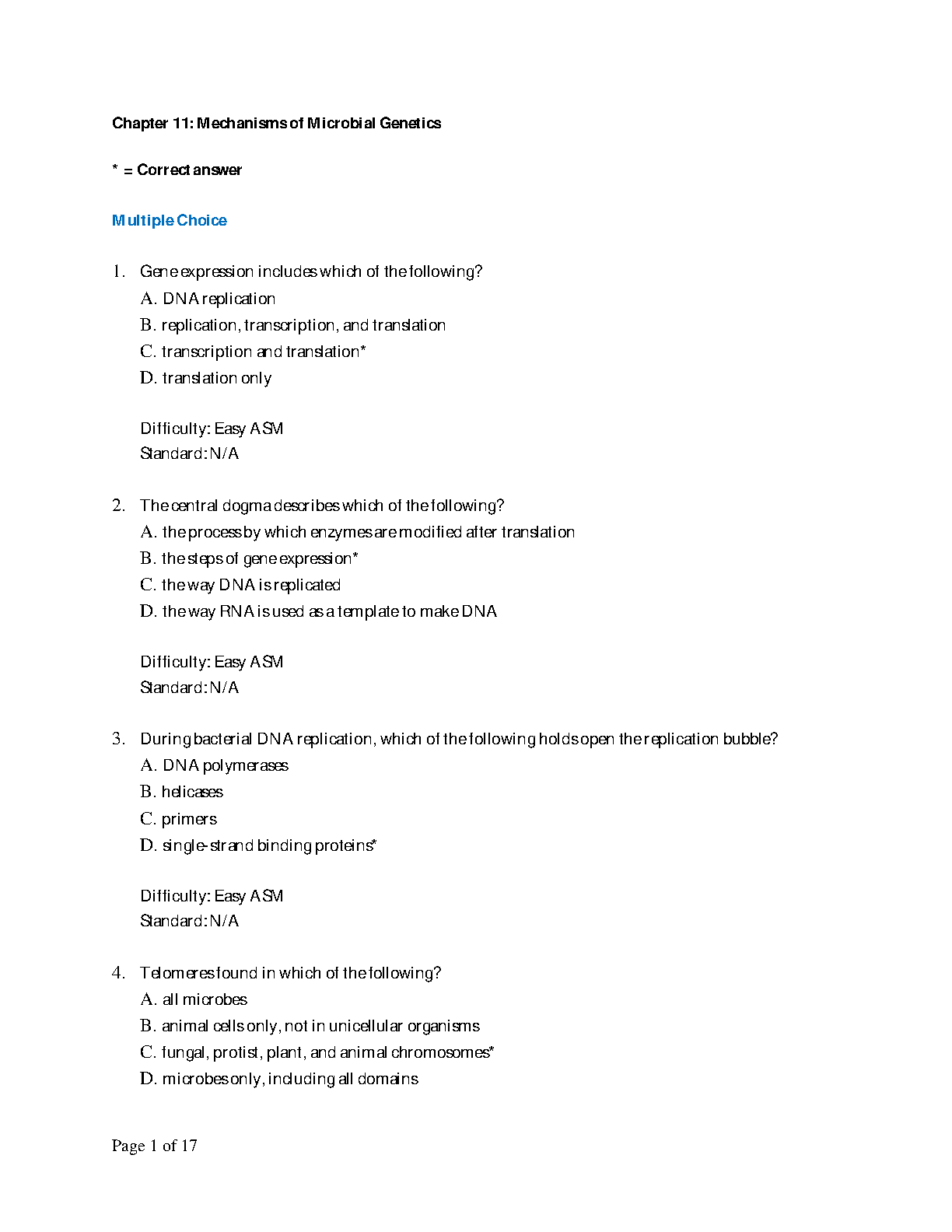 Biology 206 Microbiology OpenStax Test Bank - Chapter 11 by OpenStax
