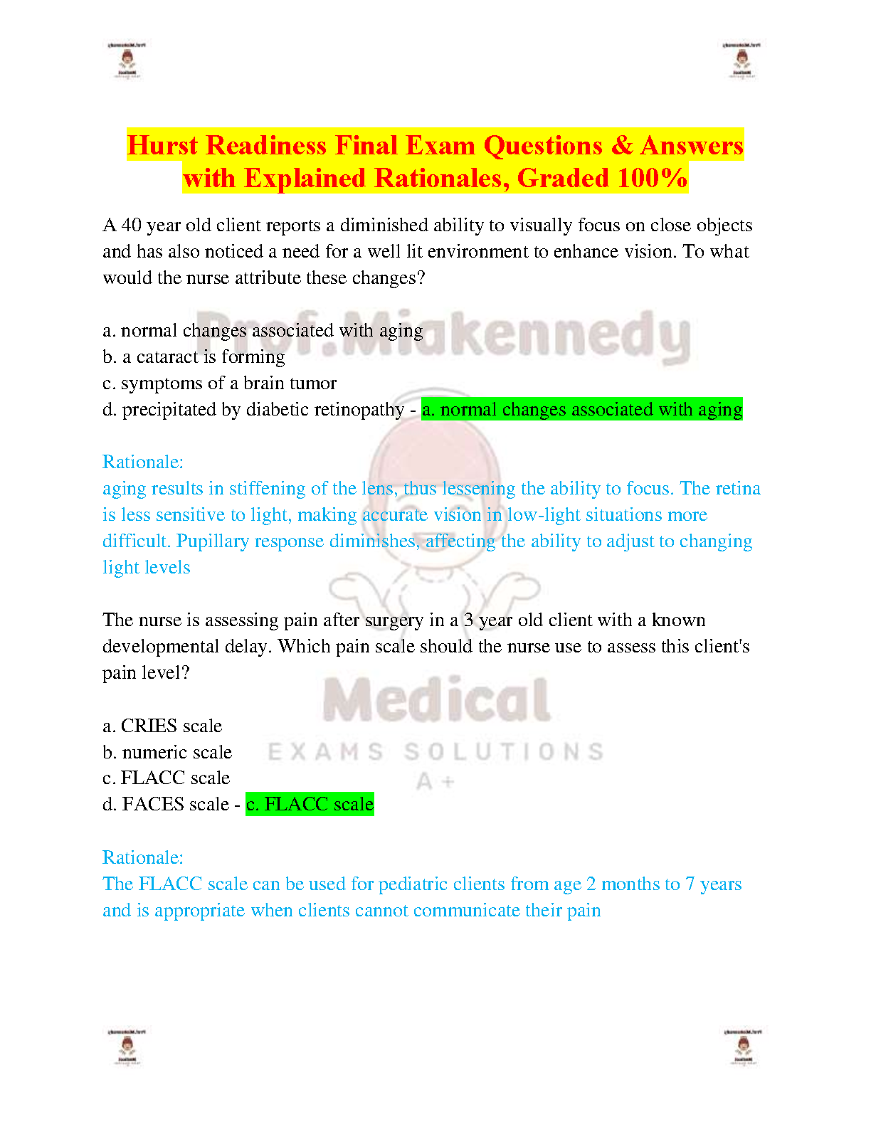 Hurst Readiness Final Exam Questions & Answers with Explained Rationales, Graded 100% by [Author Name to be found online]
