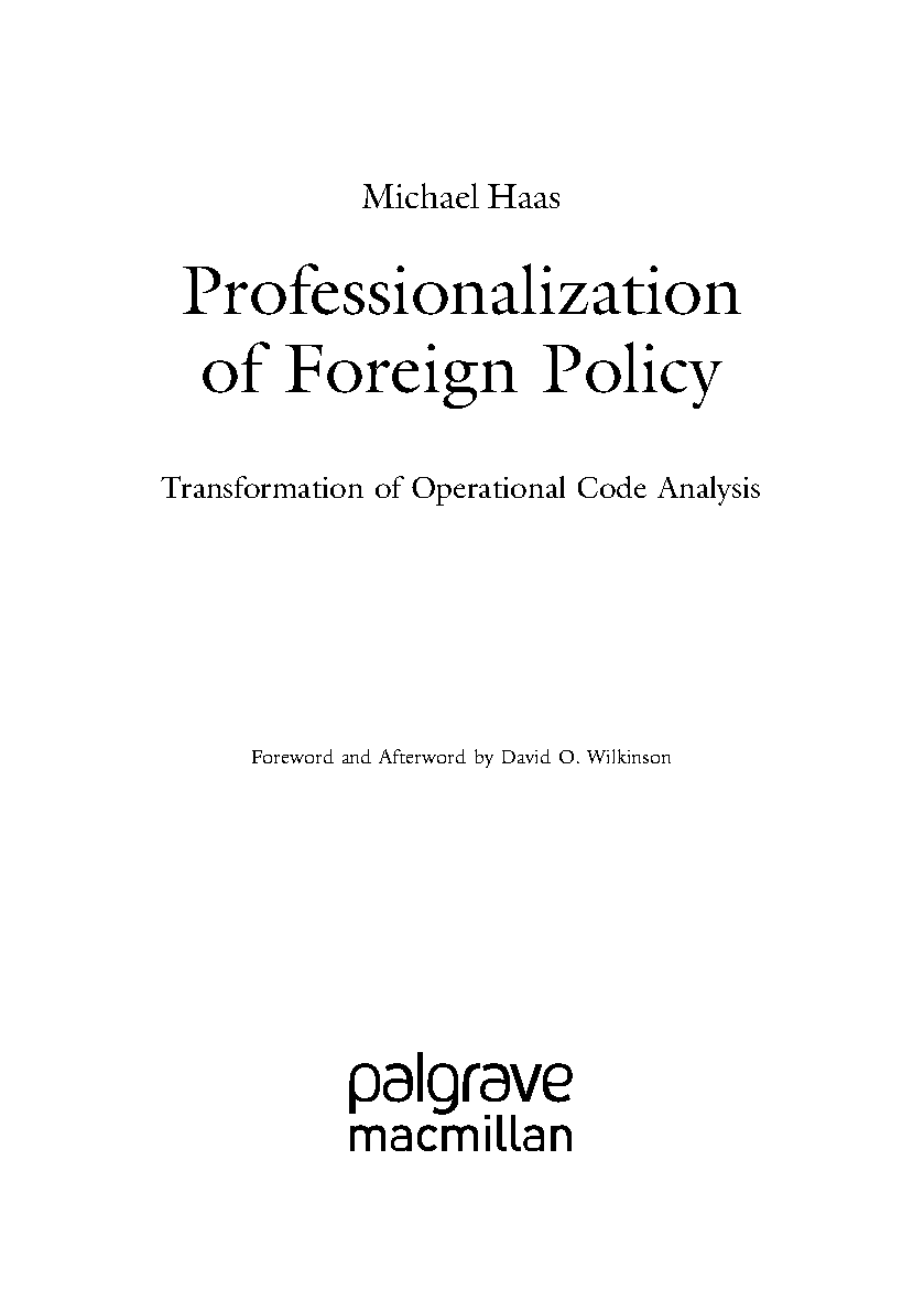 Professionalization of Foreign Policy: Transformation of Operational Code Analysis by Michael Haas and David O. Wilkinson