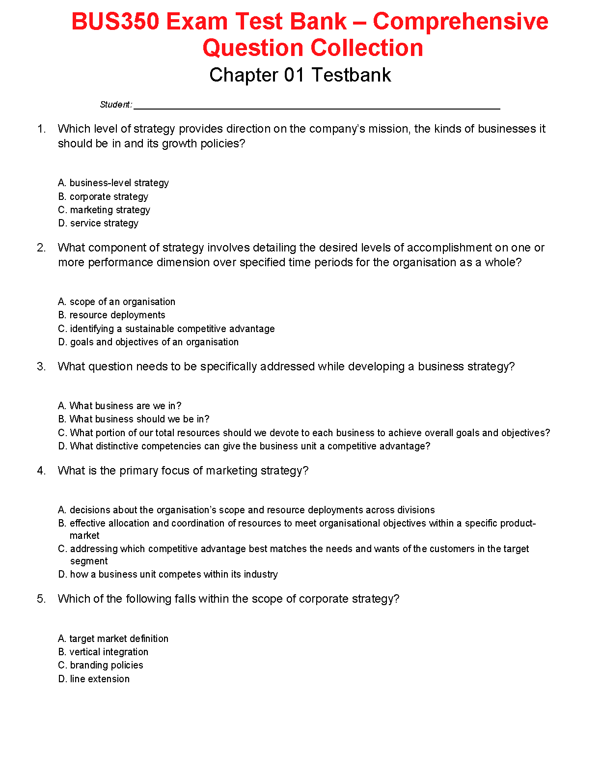 Ace your BUS350 exam on the first try with this comprehensive test bank. This resource contains a wide range of questions covering key concepts, ensuring thorough preparation and maximizing your chances of success. Ideal for students aiming to avoid resits.
