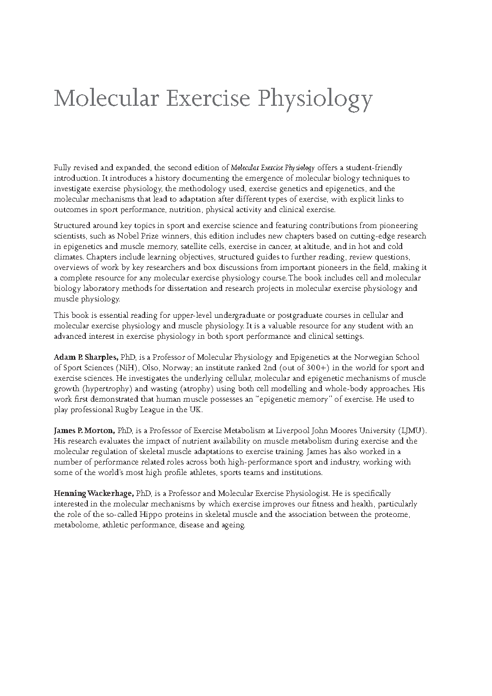 Molecular Exercise Physiology: An Introduction, Second Edition - by Adam P. Sharples, James P. Morton, and Henning Wackerhage
