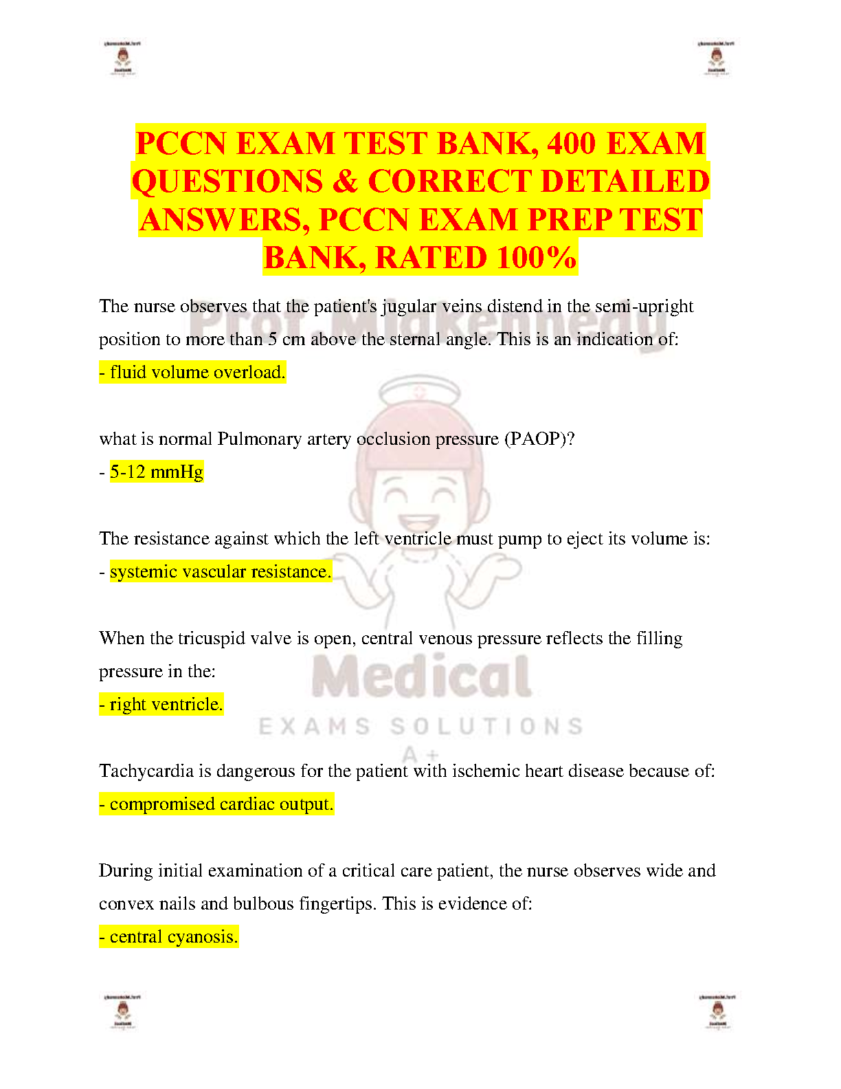 Ace your PCCN exam with this comprehensive test bank featuring 400 detailed questions and answers. Designed to help you pass on your first attempt and avoid resits. Perfect for 2024/2025 academic year students.