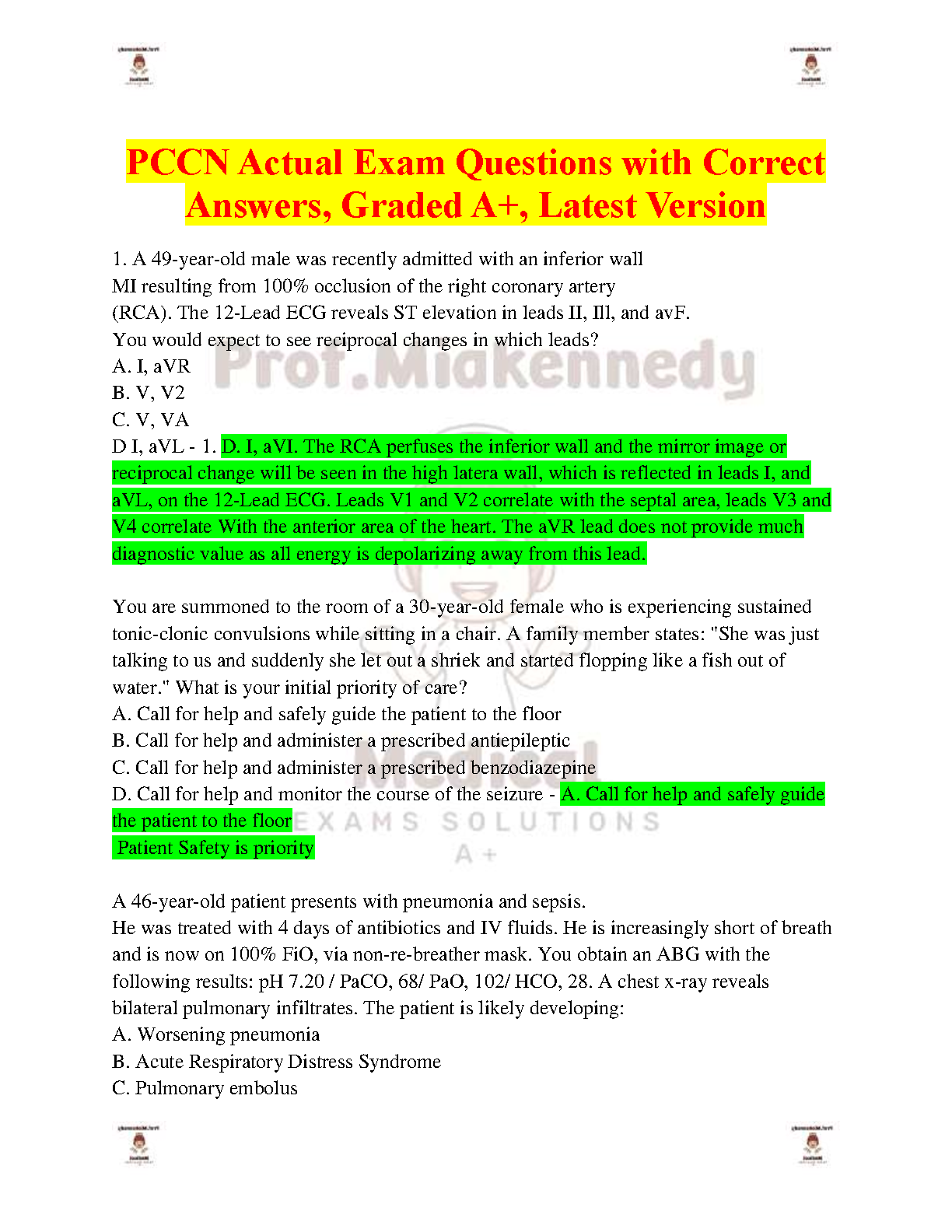PCCN Exam Questions with Correct Answers: Latest Edition by Exams Solutions