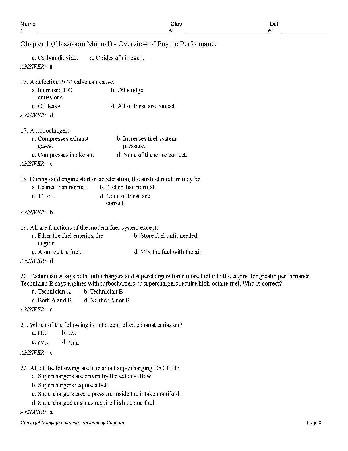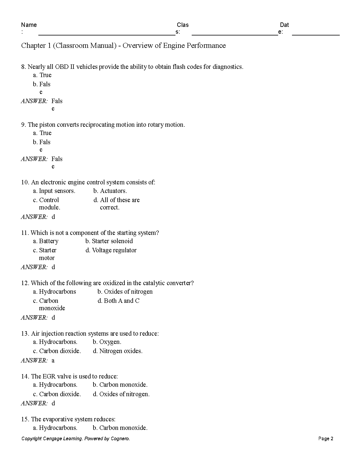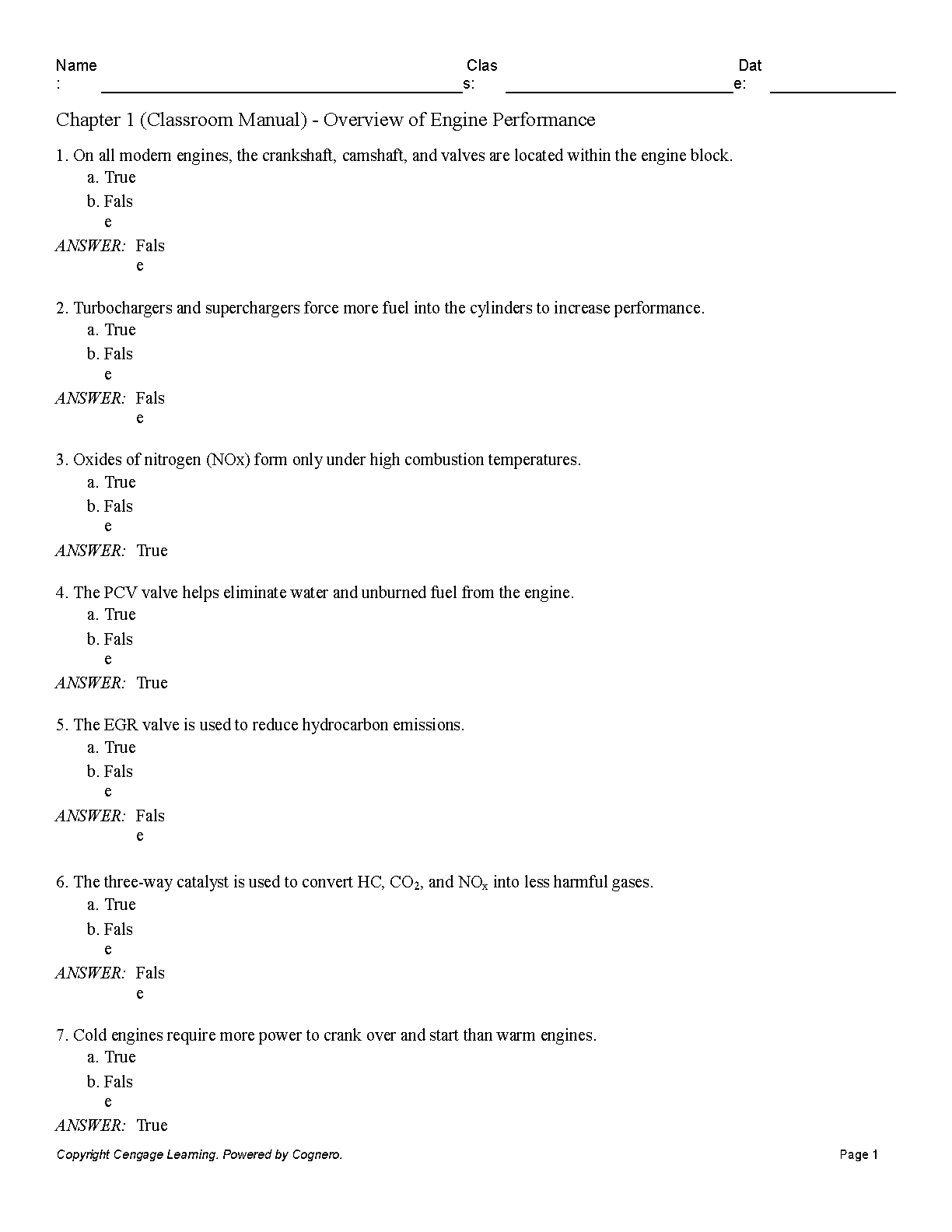 Cengage Learning Engine Performance Test Bank - 2024/2025 Edition