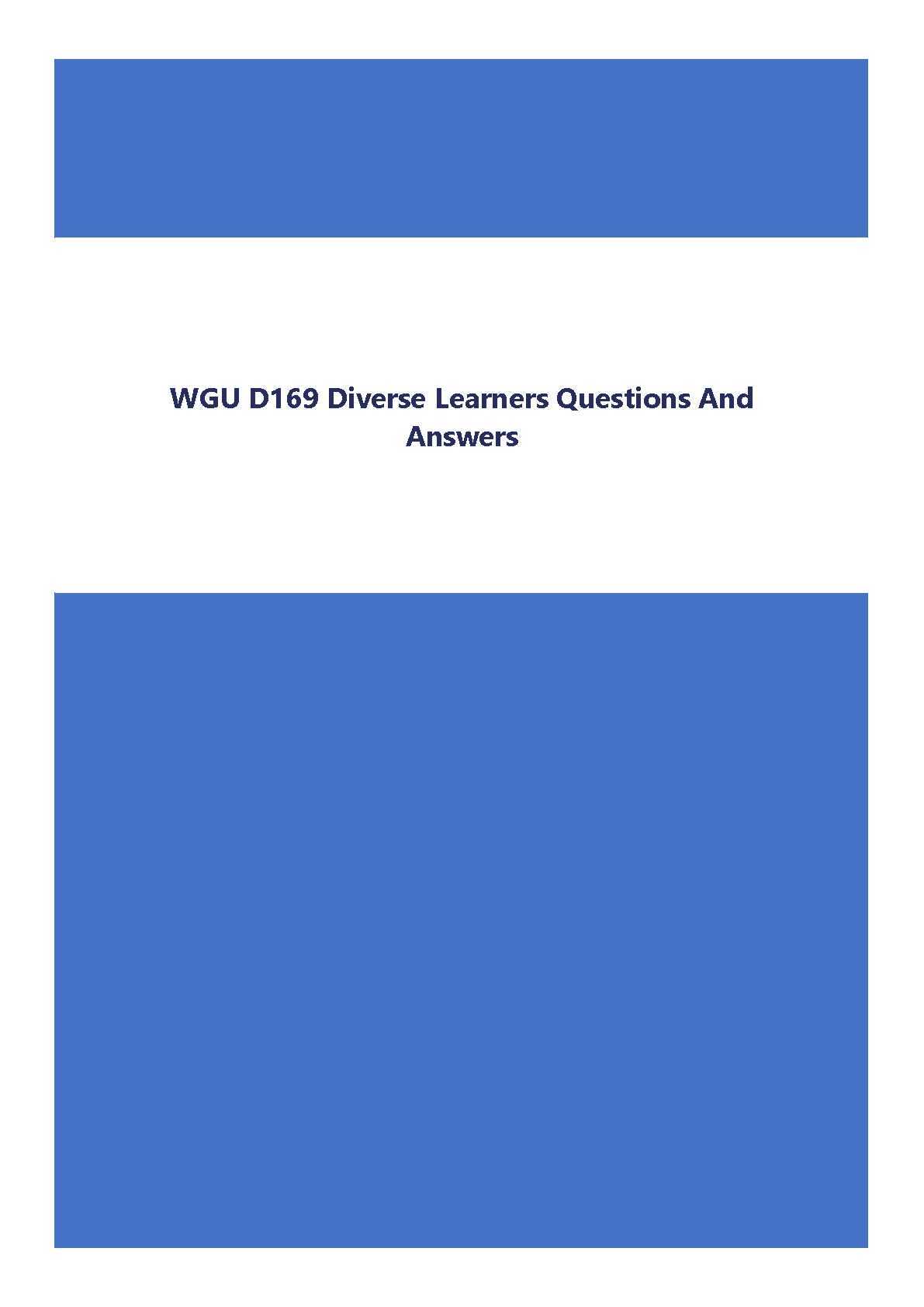 Ace your WGU D169 Diverse Learners exam with this comprehensive question and answer resource, designed to help students pass on their first attempt. This study guide provides in-depth explanations and covers all key concepts for success in the 2024-2025 academic year. Avoid resits and achieve exam mastery!