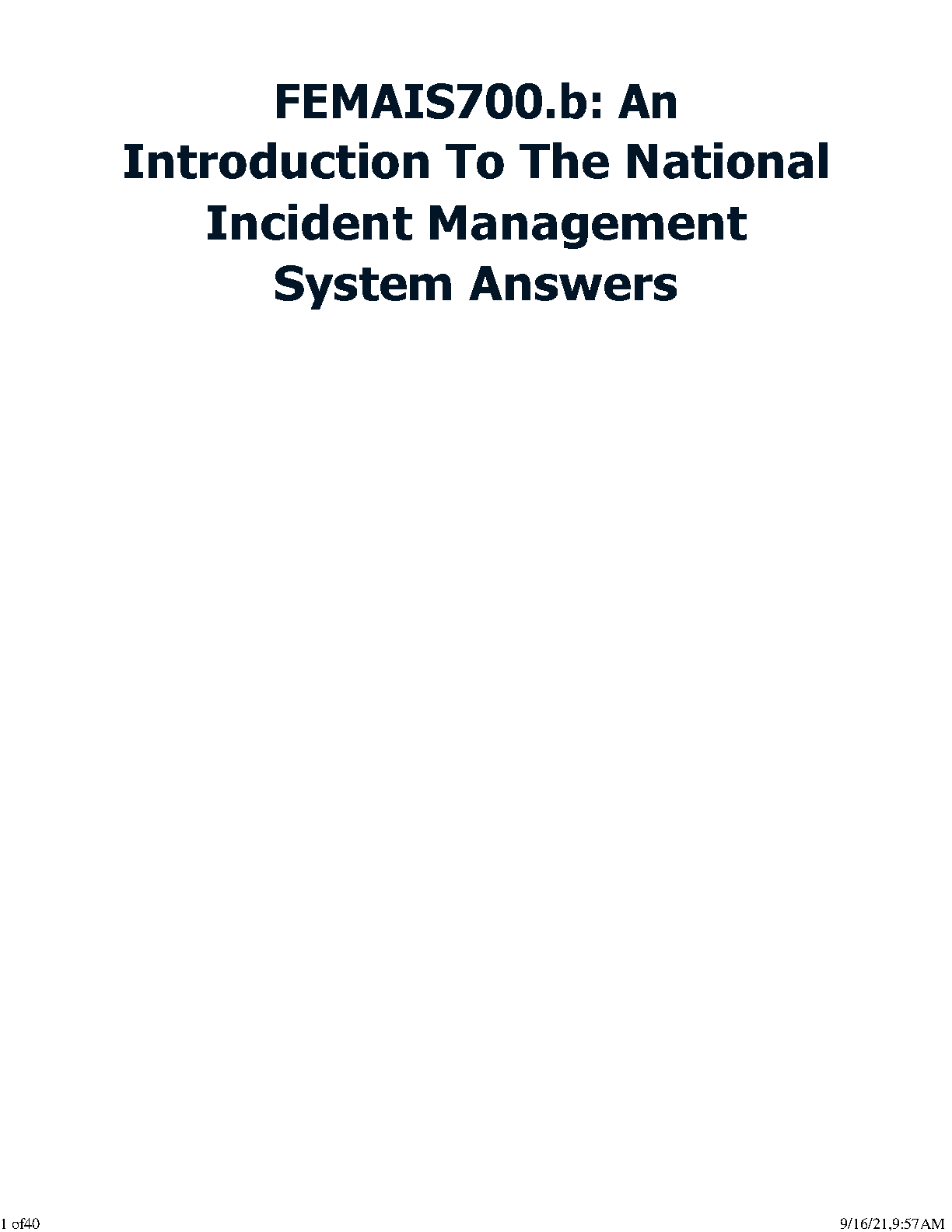 Ace your exams on the first attempt with this comprehensive guide to FEMA IS 700.b: An Introduction to the National Incident Management System. This resource provides detailed answers and explanations, ensuring you're fully prepared for your assessments in the 2024/2025 academic year. Avoid resits and master the material with our expertly curated solutions.