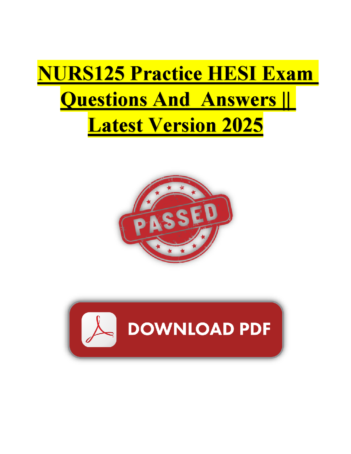 NURS125 Practice HESI Exam Questions and Answers 2025 Edition: Ace Your Nursing Exams