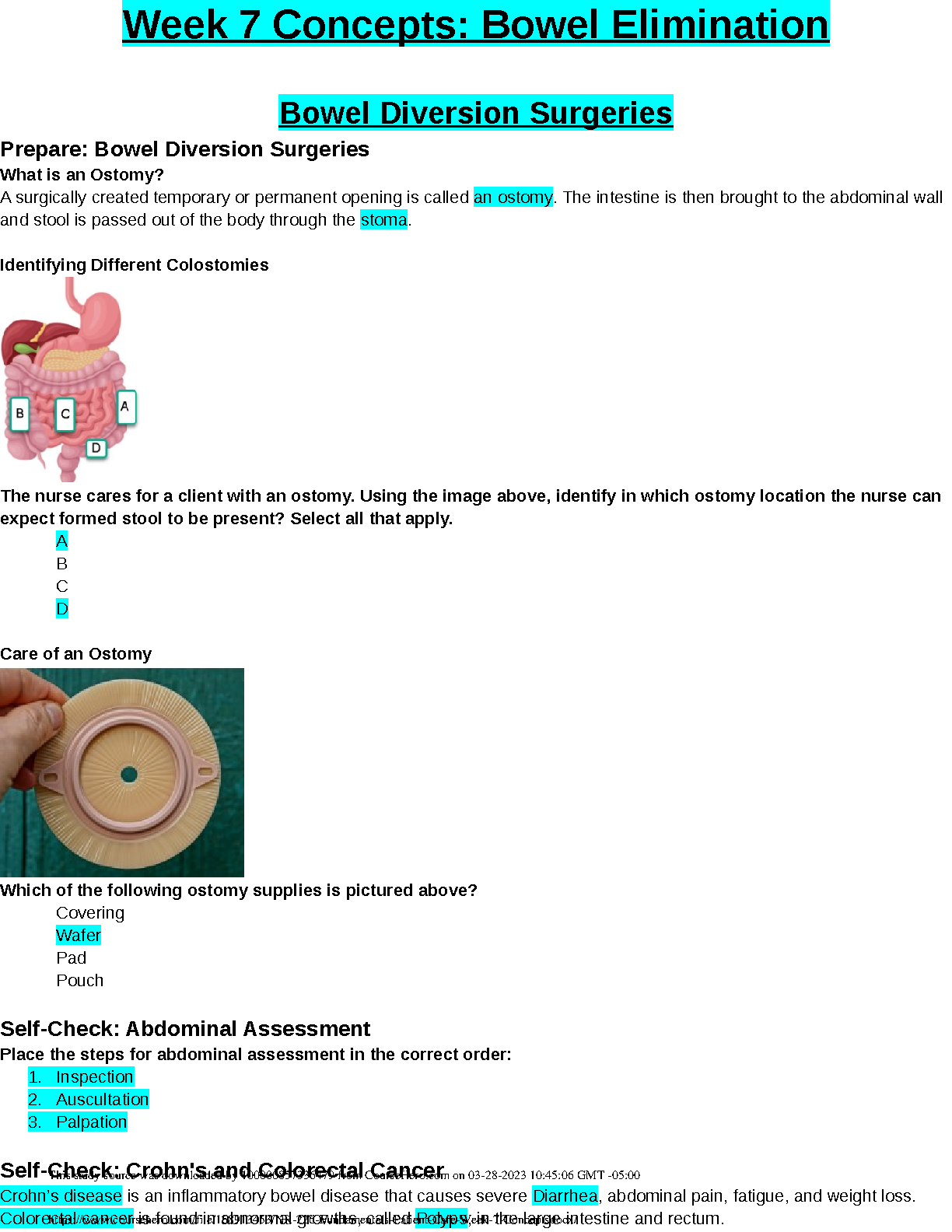 ATI FUNDAMENTALS Week 7 Concepts: Bowel Elimination Bowel Diversion Surgeries LATEST VERSION