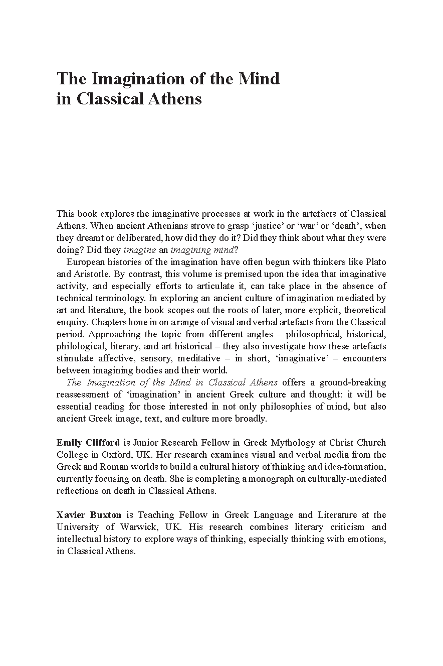 The Imagination of the Mind in Classical Athens: Forms of Thought (Edited by Emily Clifford and Xavier Buxton)