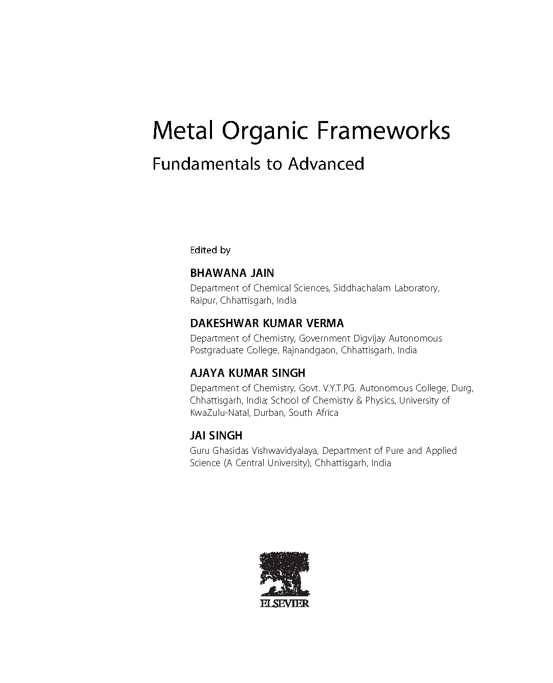 Metal Organic Frameworks: Fundamentals to Advanced - Edited by Bhawana Jain, Dakeshwar Kumar Verma, Ajaya Kumar Singh, and Jai Singh