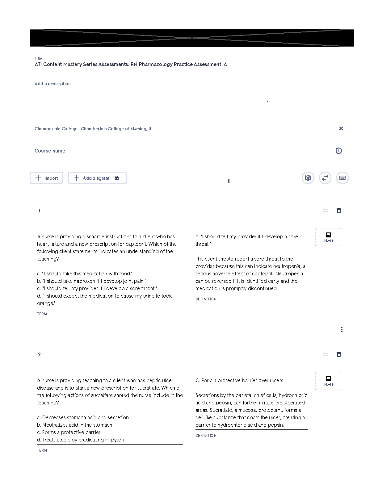 ATI Content Mastery Series Assessments: RN Pharmacology Practice Assessment A - Chamberlain College of Nursing