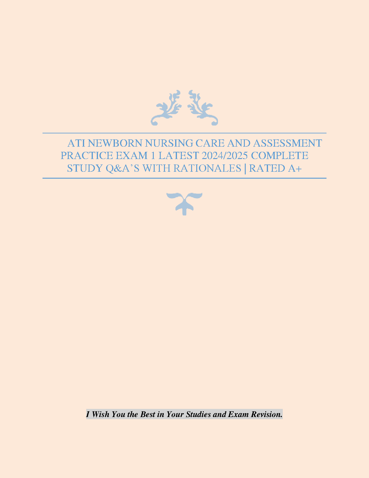 ATI Newborn Nursing Care and Assessment Practice Exam 2024/2025: Complete Study Q&A's with Rationales - Rated A+