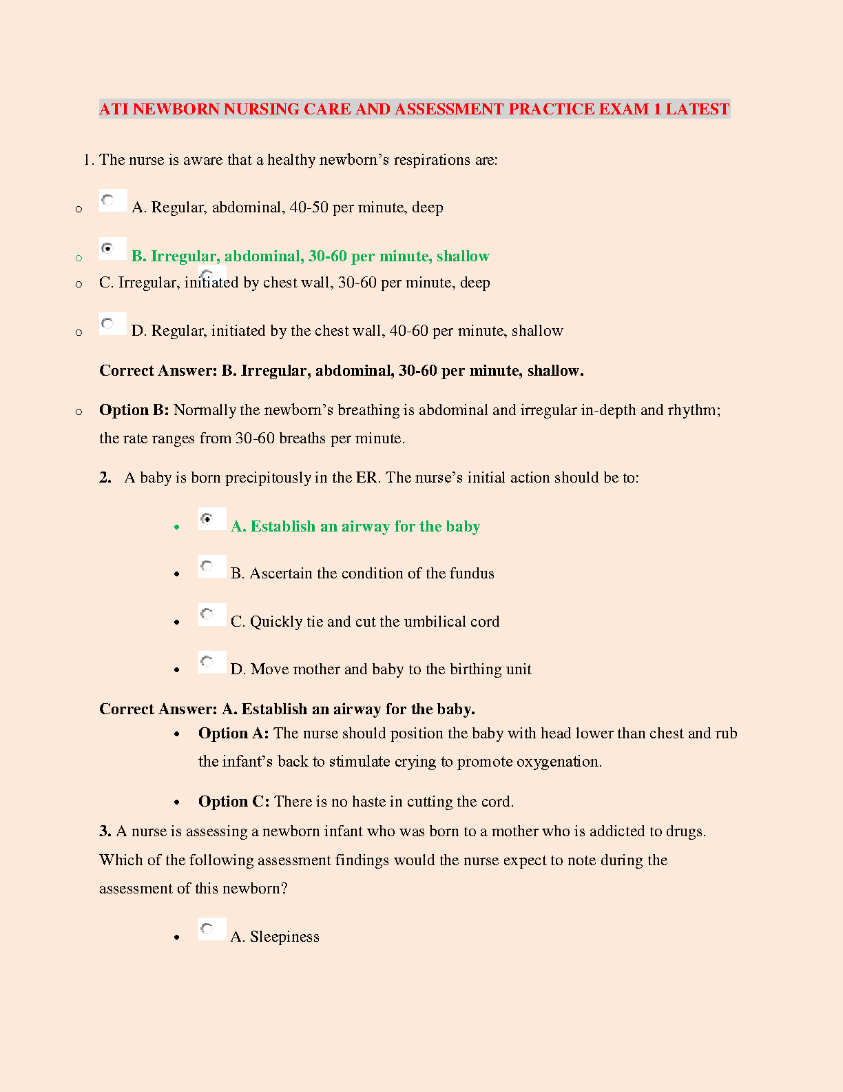Ace your ATI Newborn Nursing Care and Assessment exam with this comprehensive 2024/2025 practice exam. Includes complete study Q&As with rationales for every question, designed to help you pass on your first attempt and avoid resits. Rated A+ for its effectiveness!