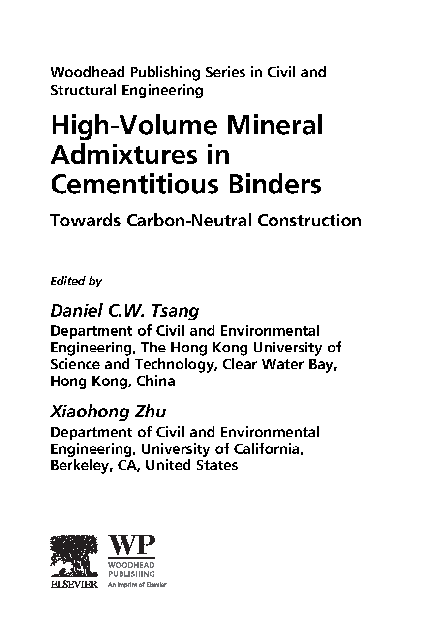 High-Volume Mineral Admixtures in Cementitious Binders: Towards Carbon-Neutral Construction - Edited by Daniel C.W. Tsang and Xiaohong Zhu